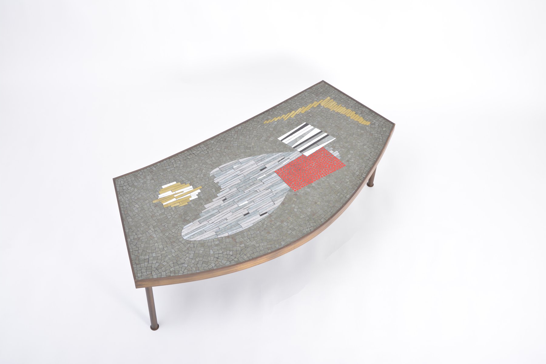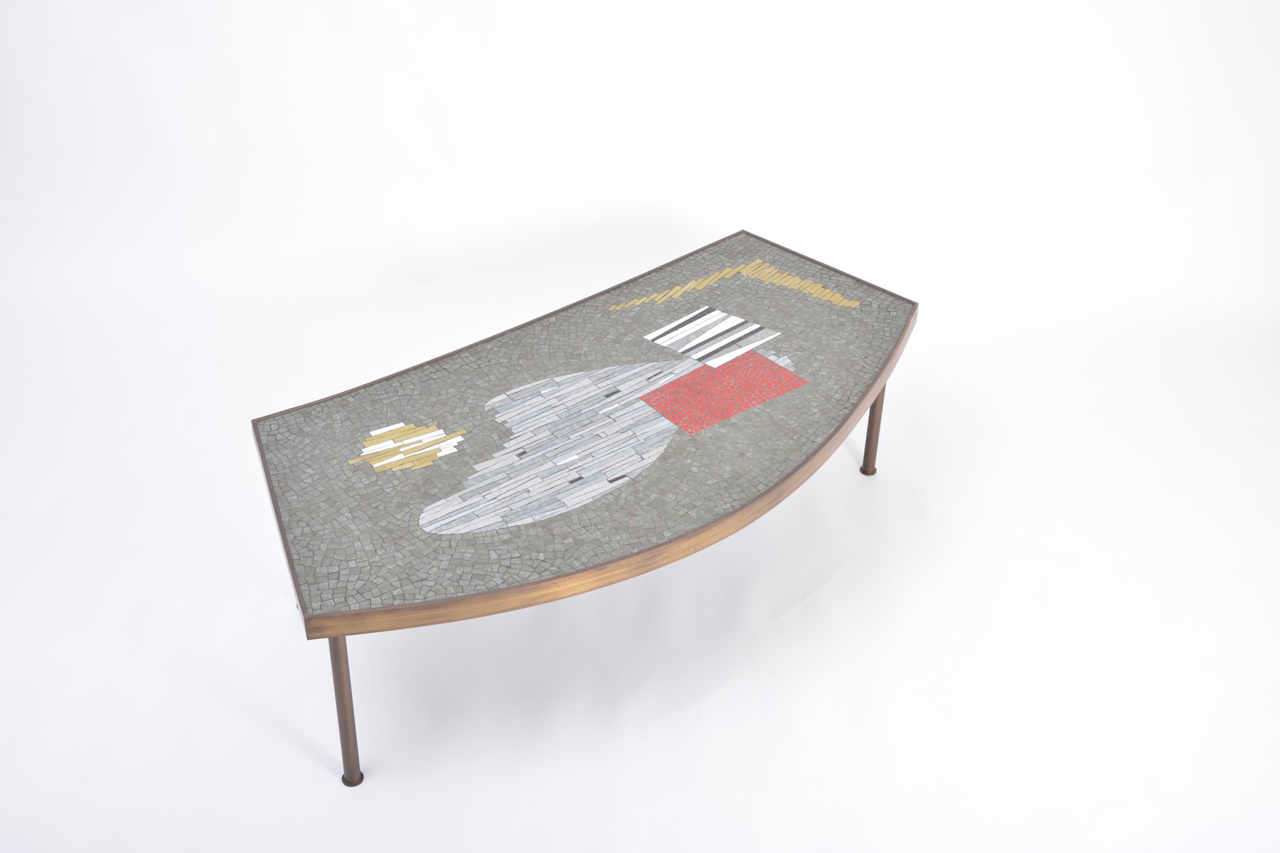 Large Mid-Century Mosaic and Brass Coffee Table by Berthold Müller-Oerlinghausen