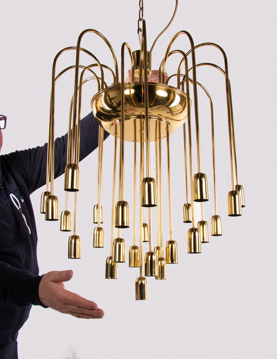 Large Modernist Brass Spider Flush Mount in the style of Florian Schulz, Germany, 1960s