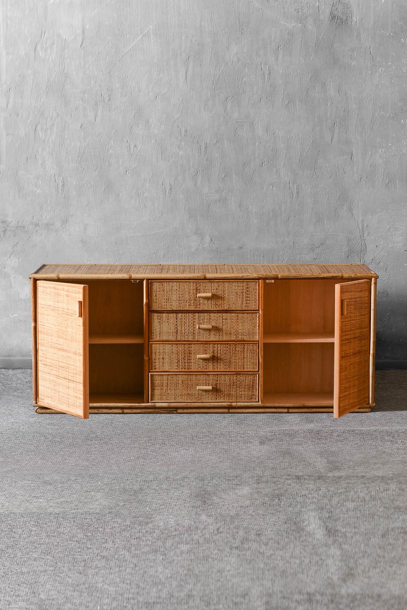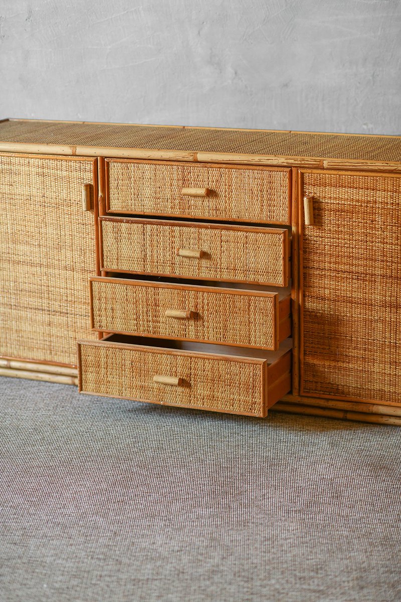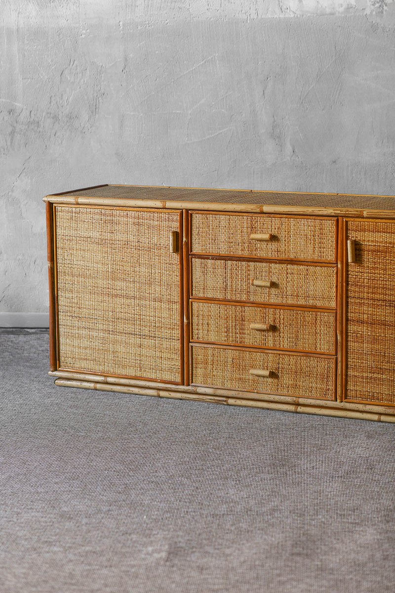 Large Sideboard in Rush and Wicker, 1980
