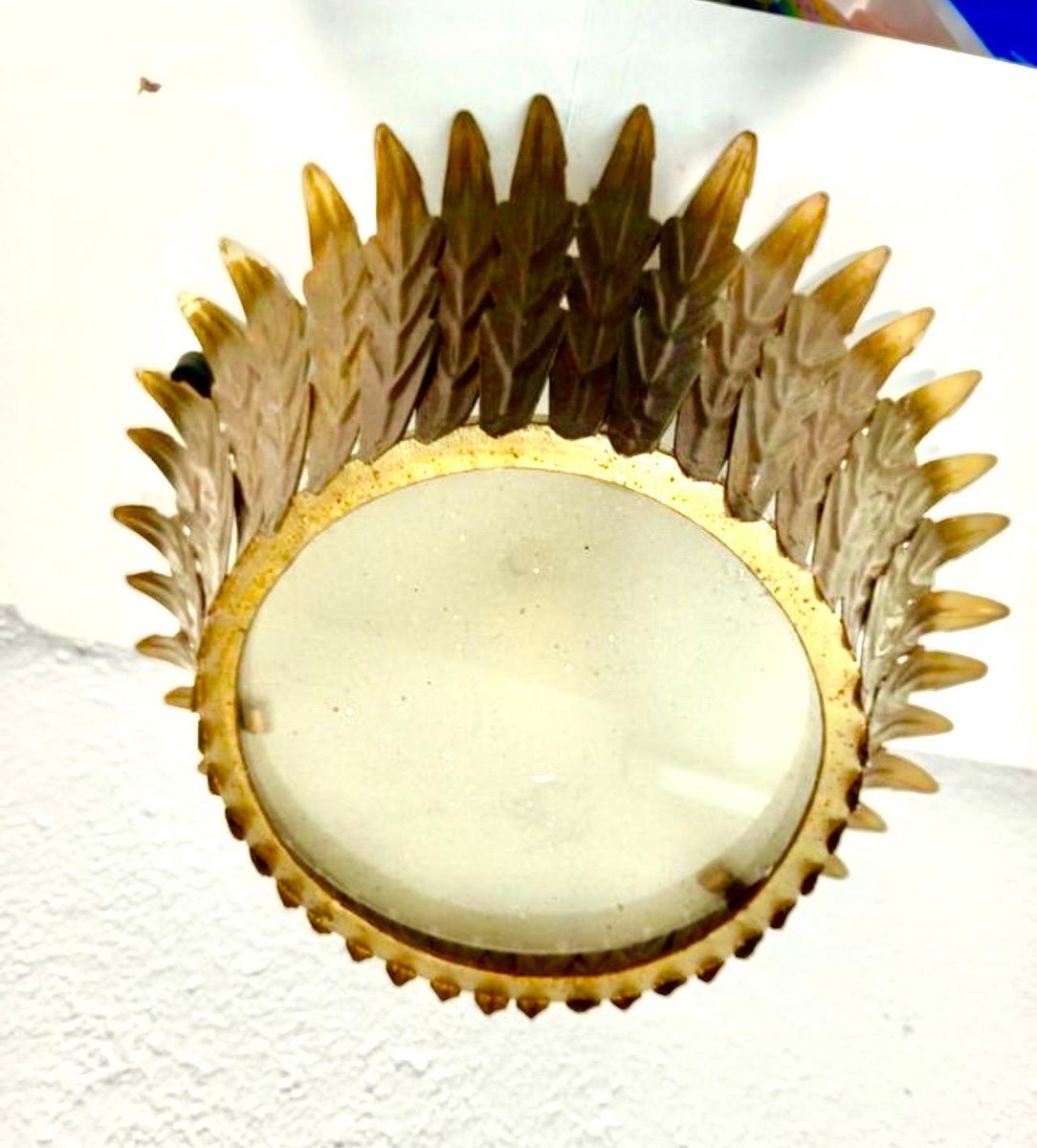 Large Spanish Sunburst Fixture in Copper Finish Metal, 1950s