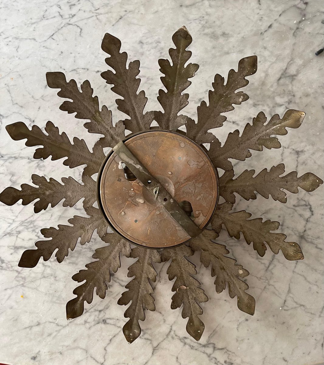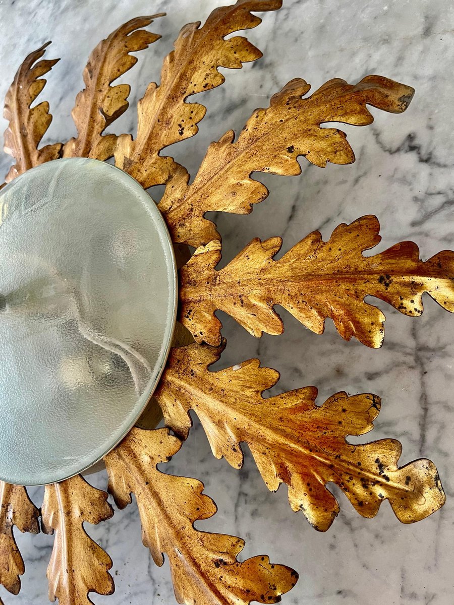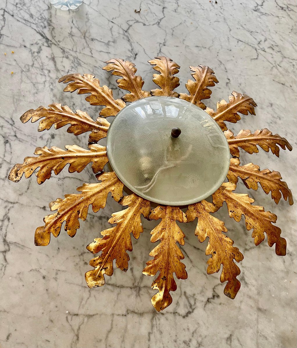 Large Spanish Sunburst Fixture in Gilt Metal with Support, 1950