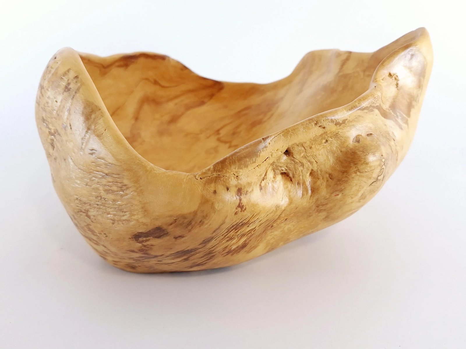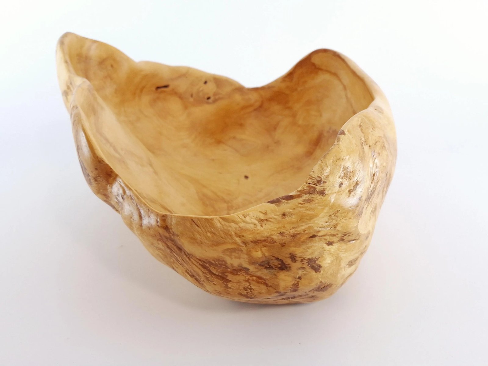 Large Swedish Handcarved Burl Wood Bowl, 1981