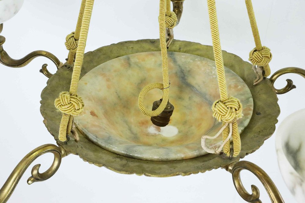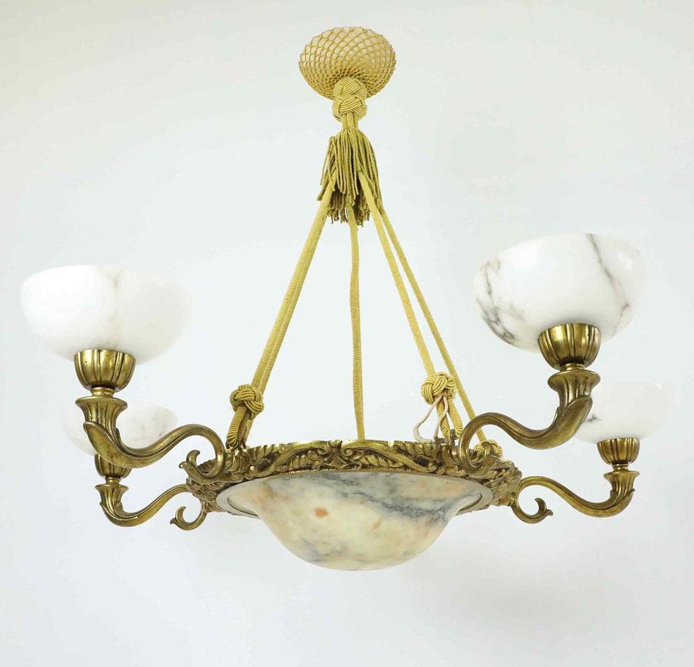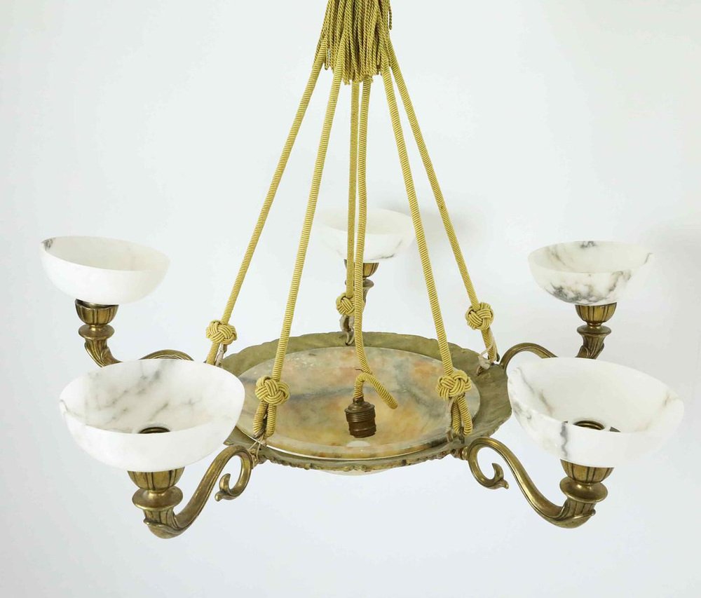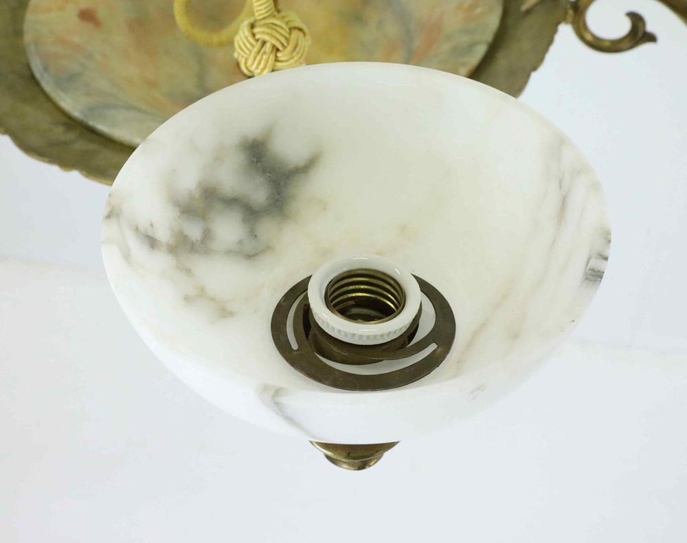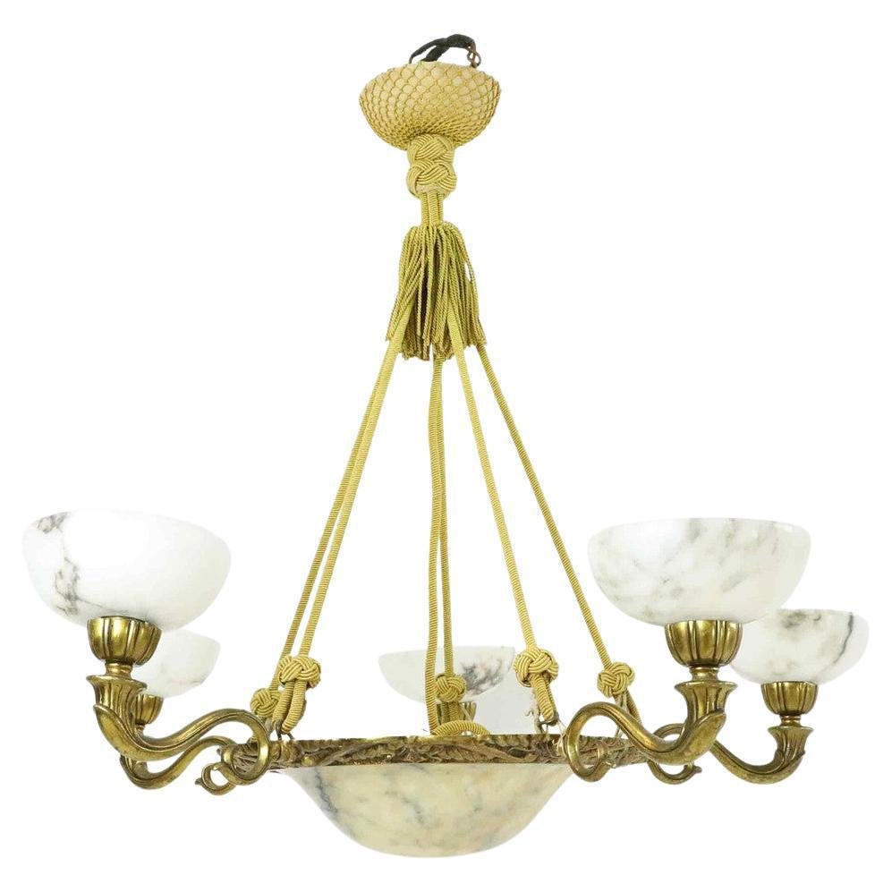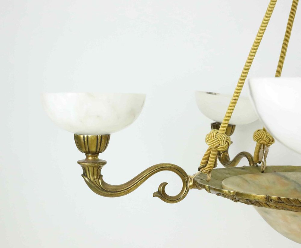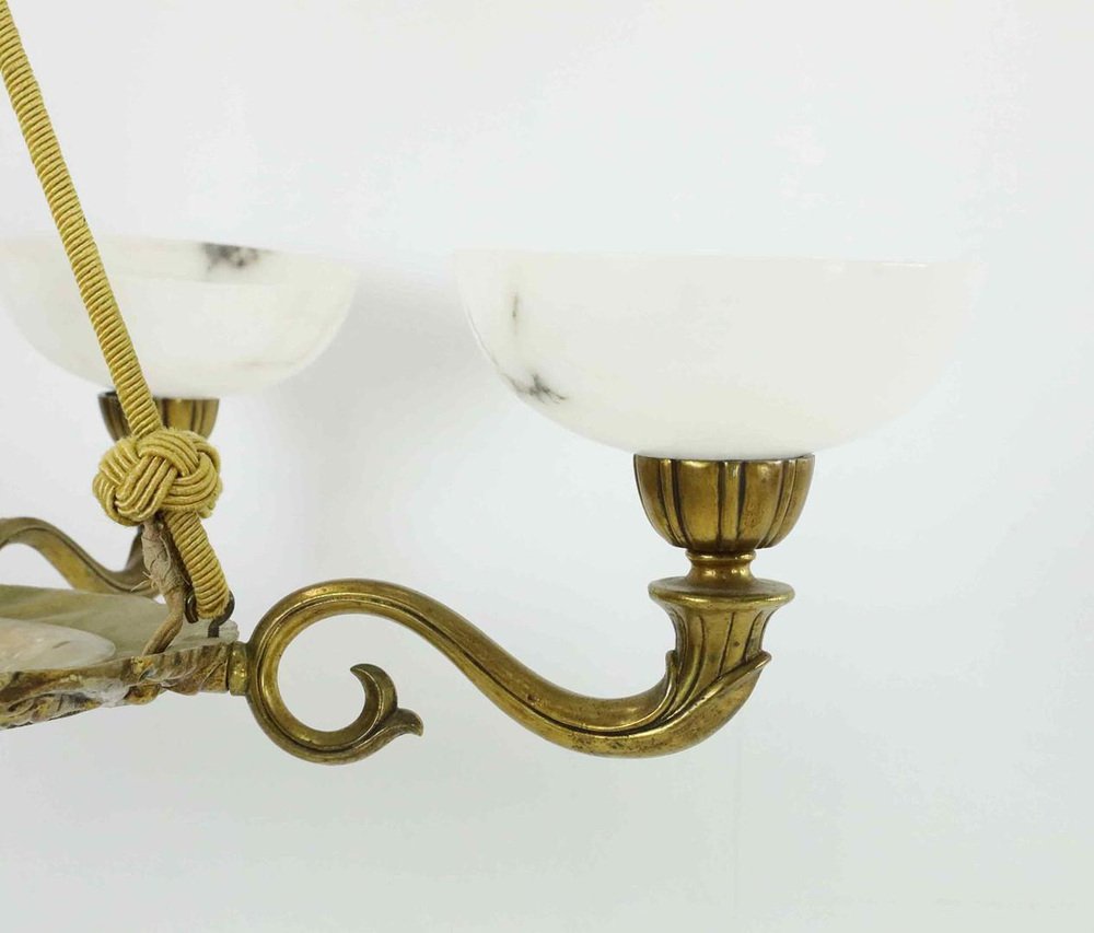 Large Swedish Modern Art Deco Chandelier in Alabaster and Brass, 1930
