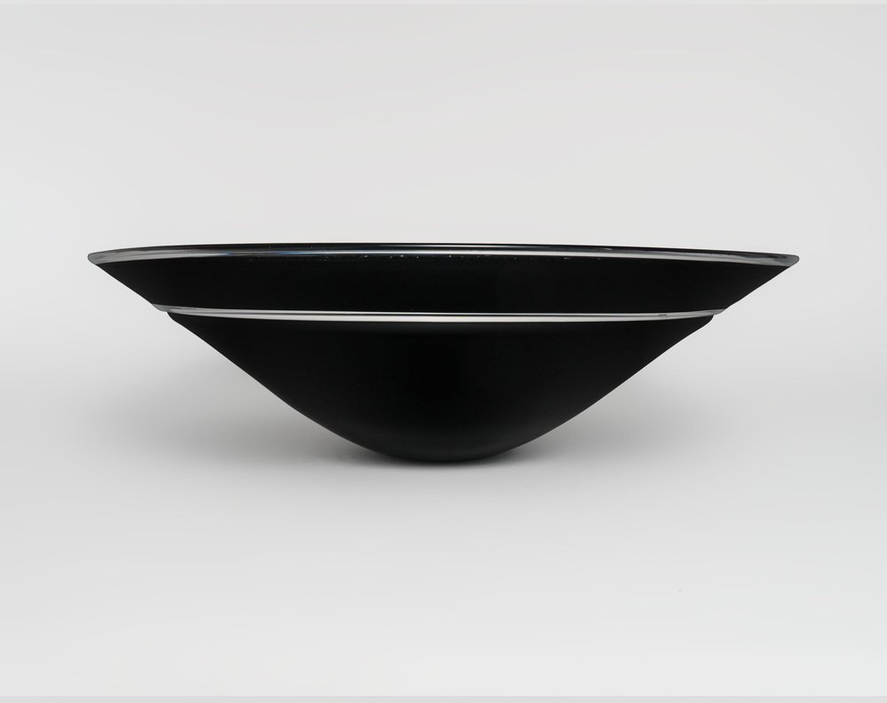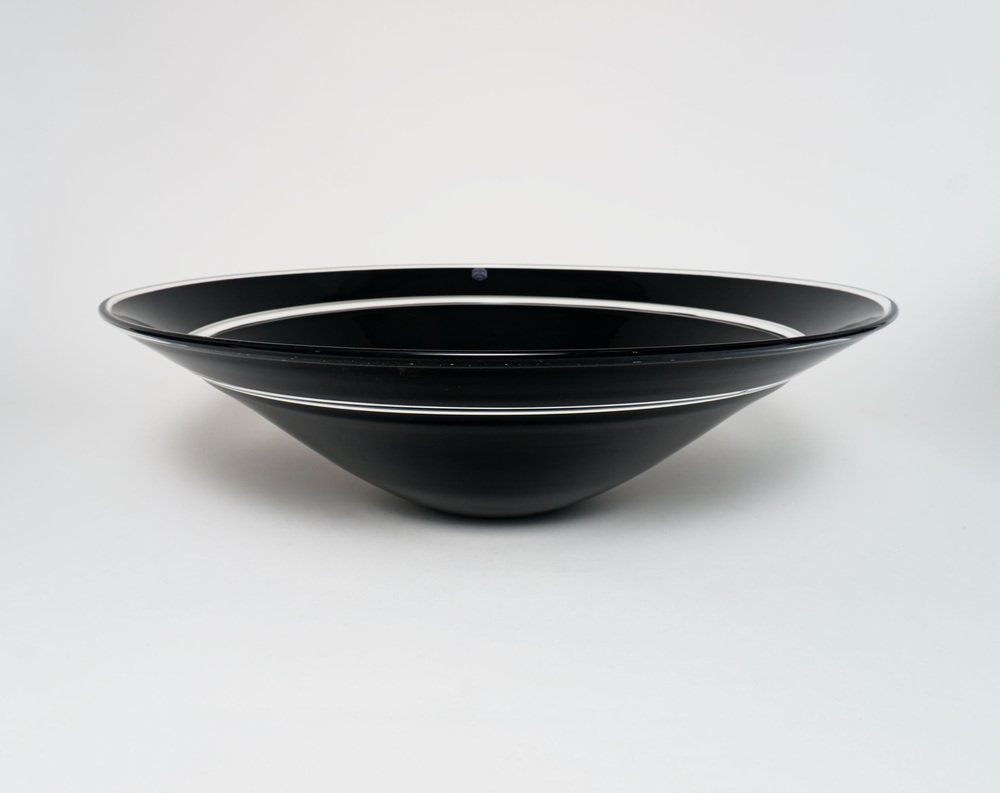 Large Vintage Black Murano Glass Incalmo Centrepiece Bowl from Cenedese, 1980s