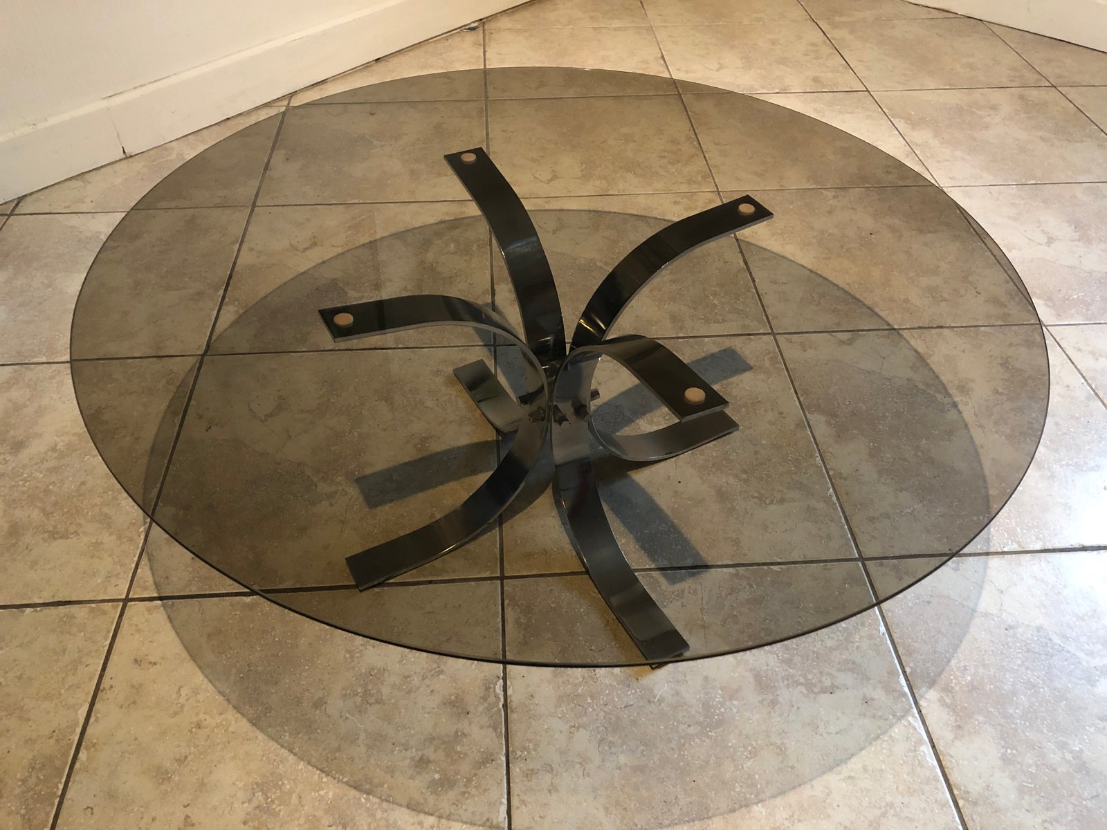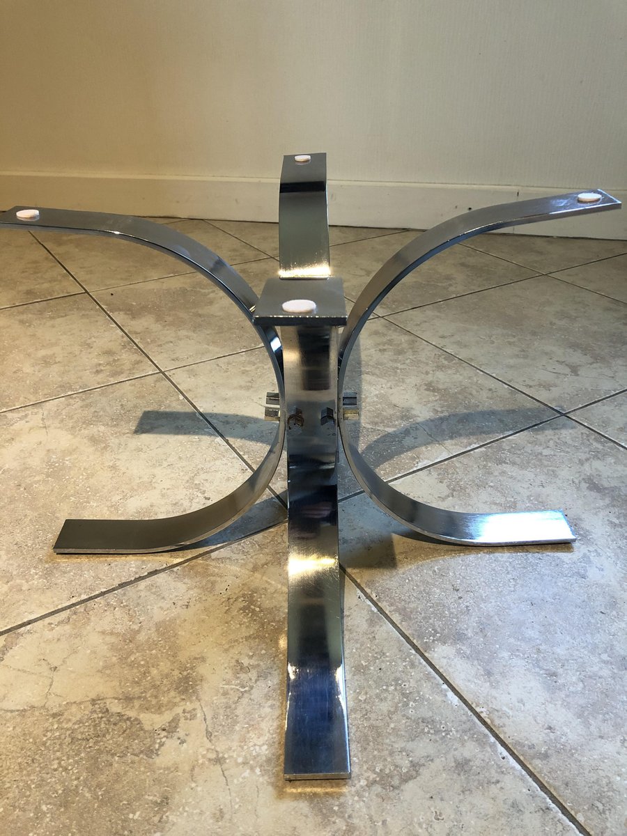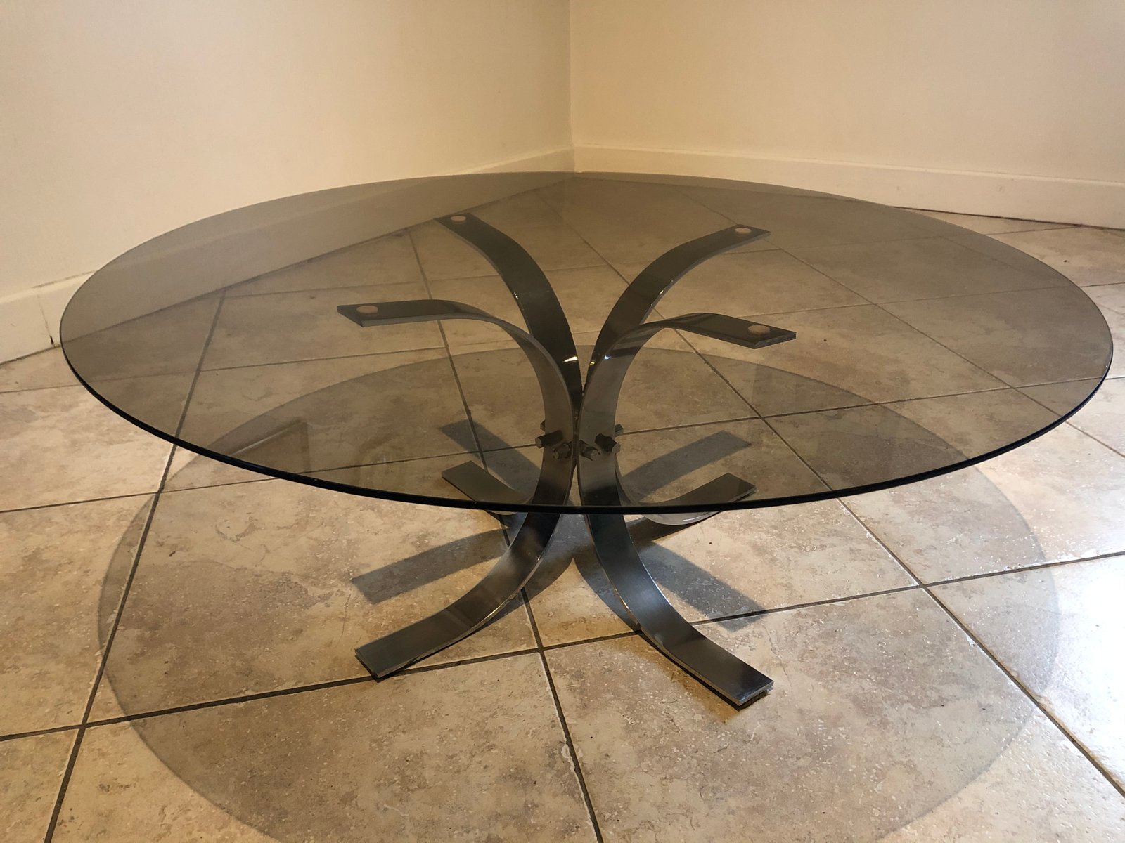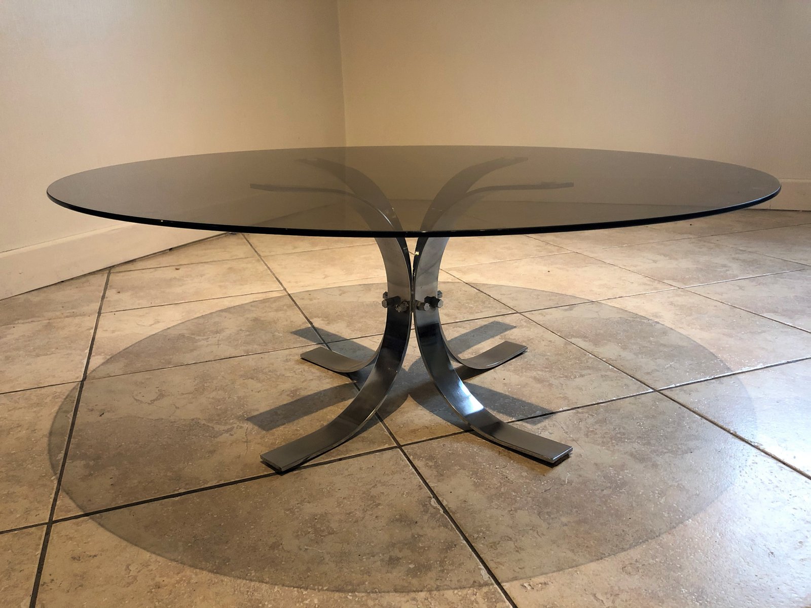 Large Vintage Smoked Glass and Chrome Coffee Table, 1970s