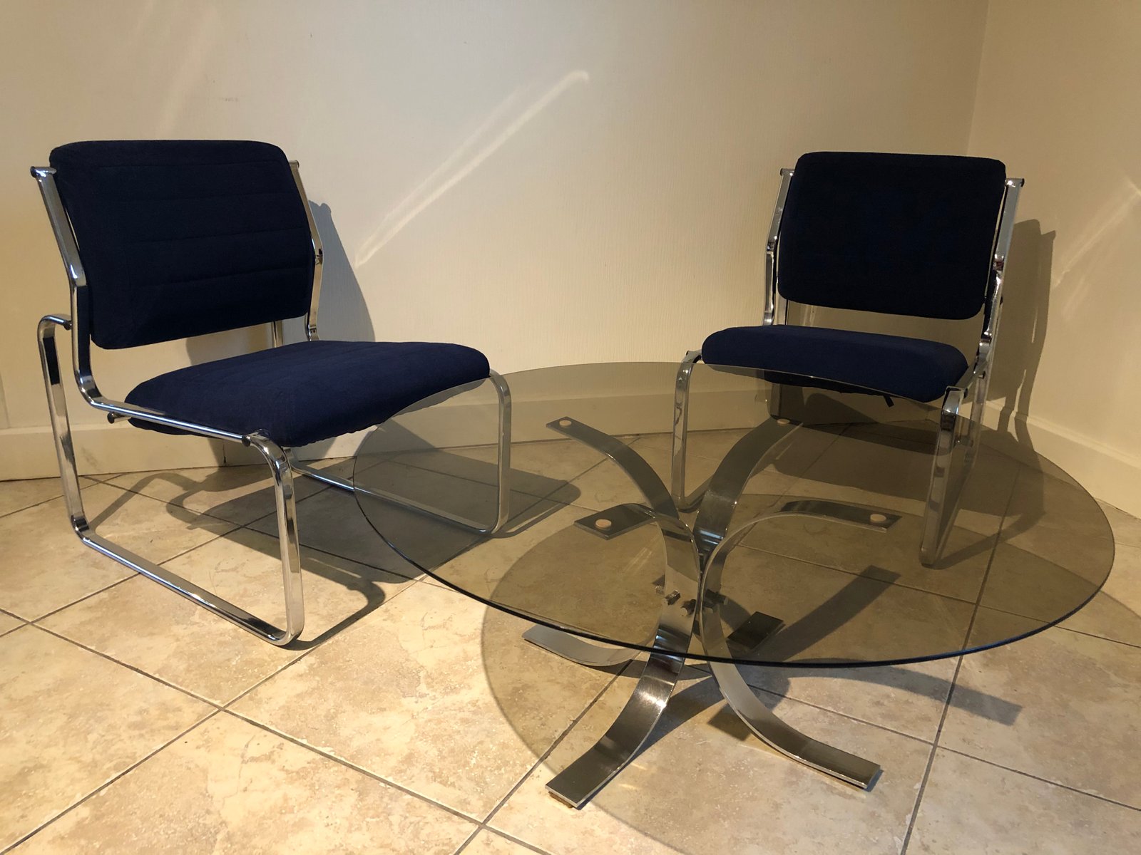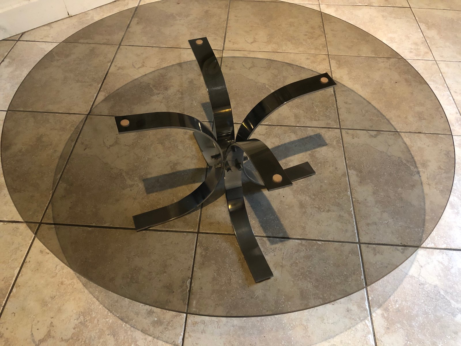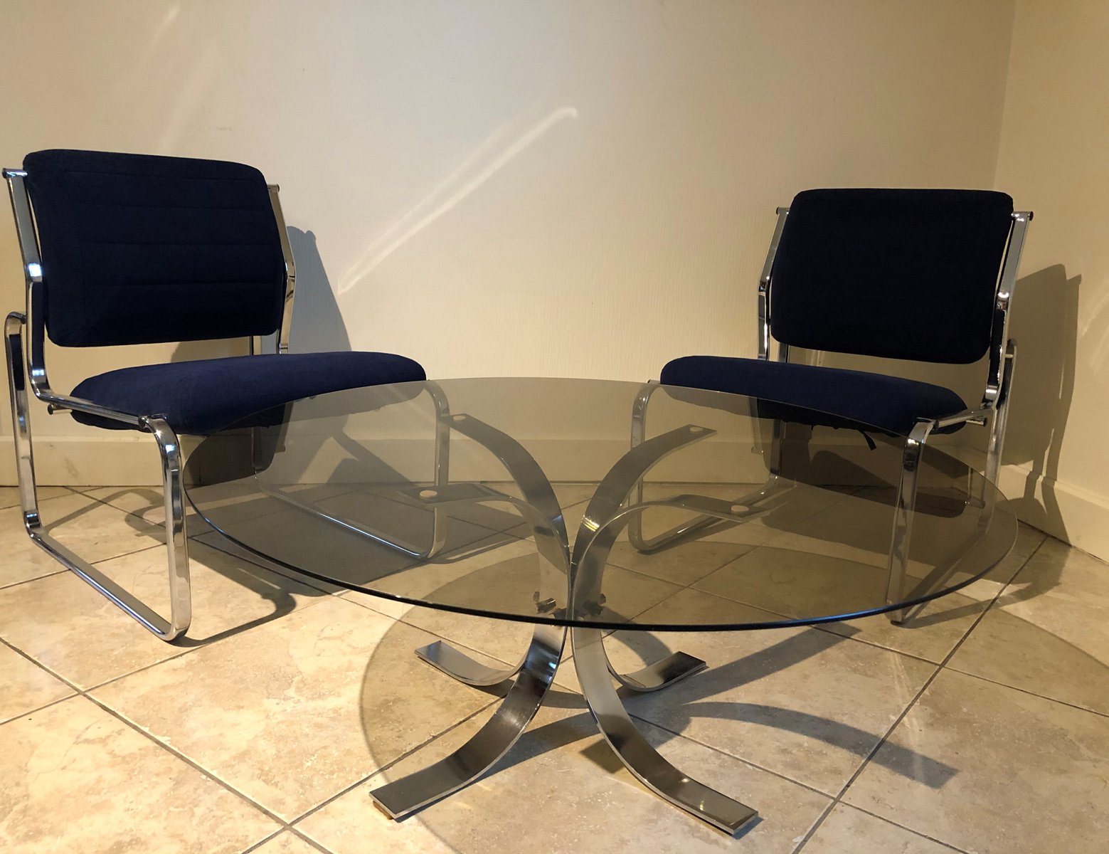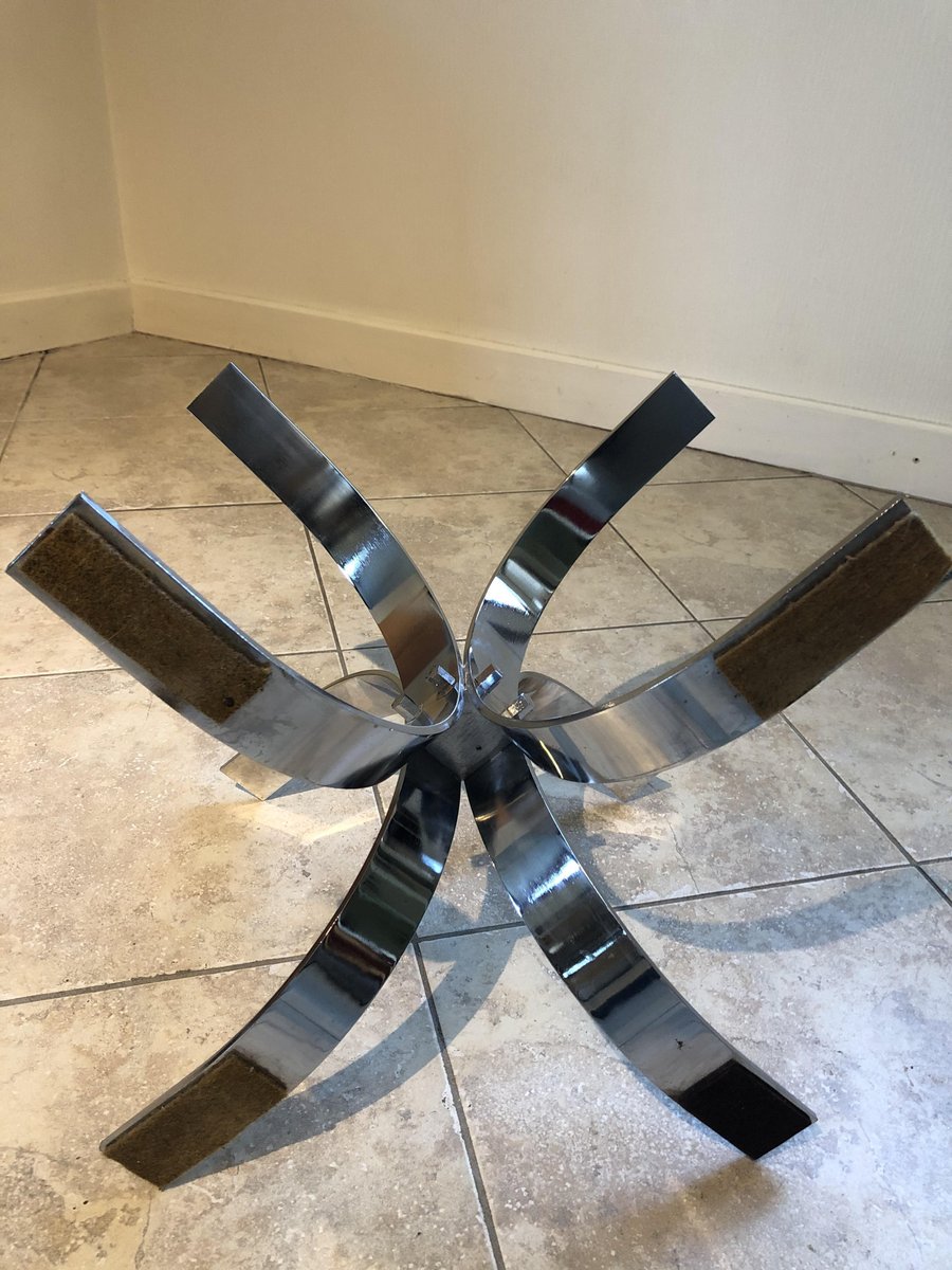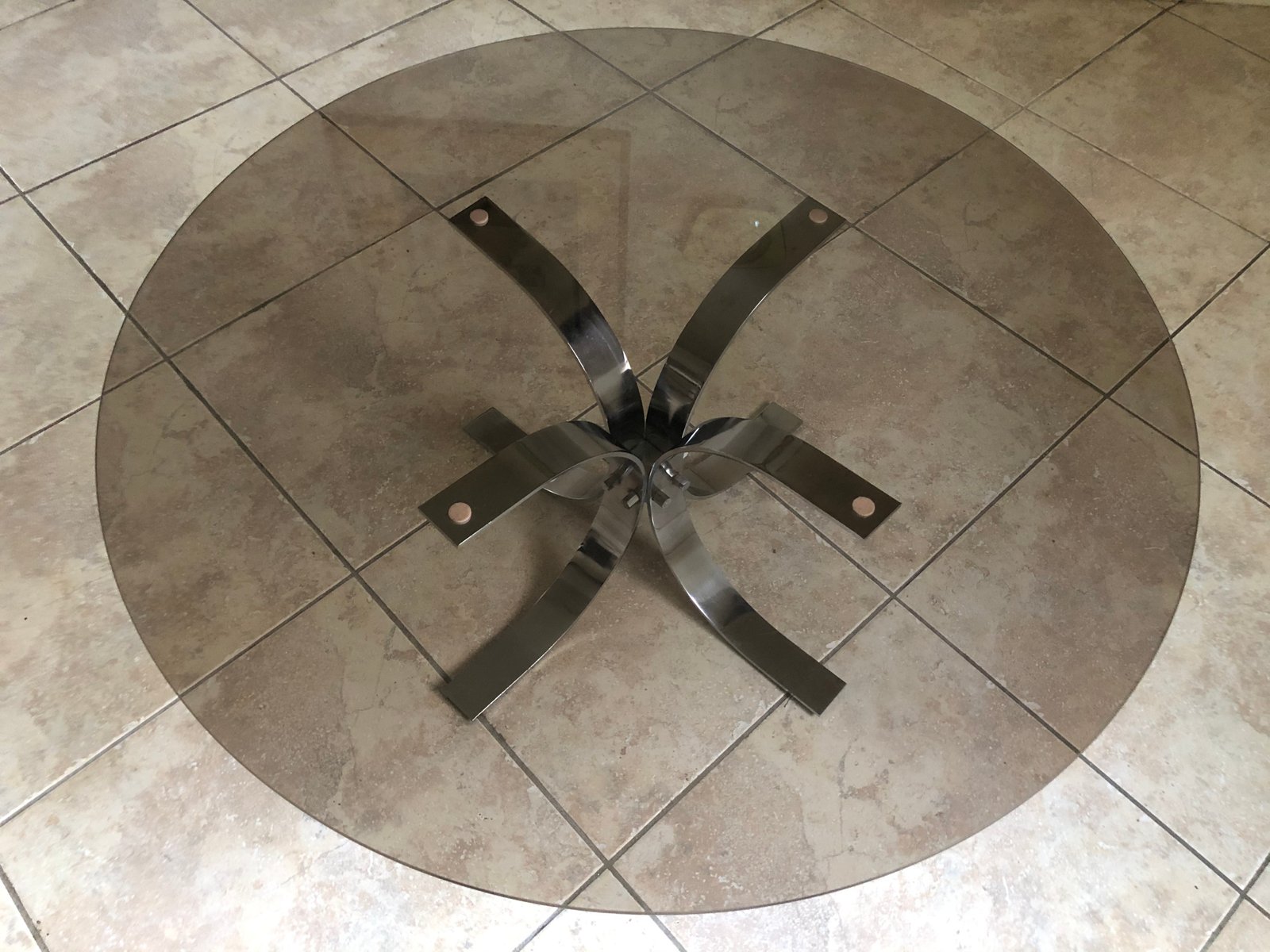 Large Vintage Smoked Glass and Chrome Coffee Table, 1970s
