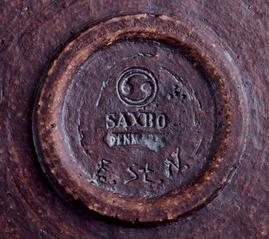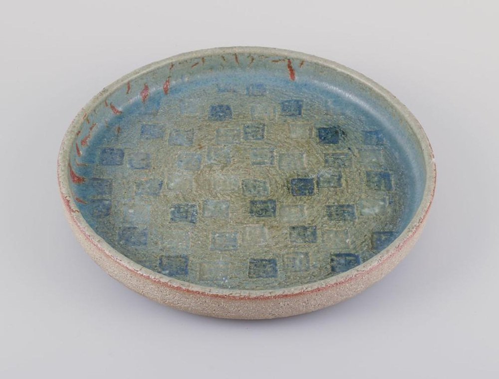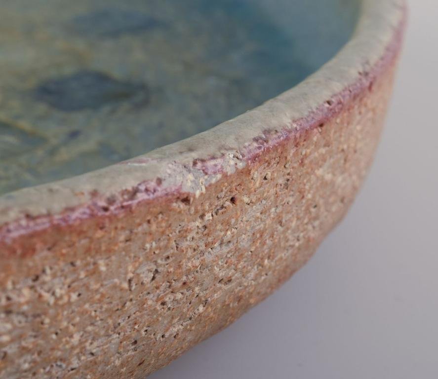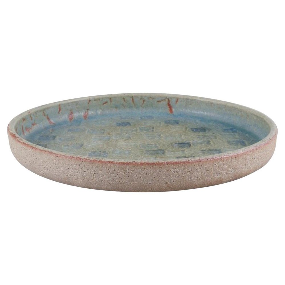 Large Vintage Stoneware Dish with Blue and Green Glaze by Eva Stæhr-Nielsen for Saxbo