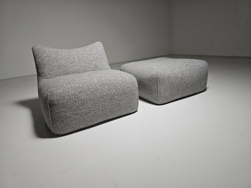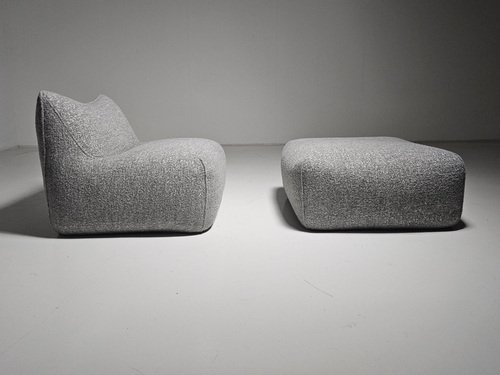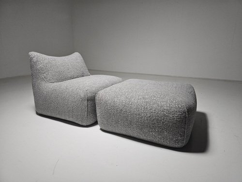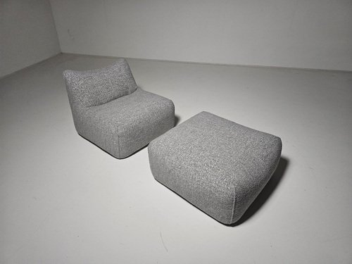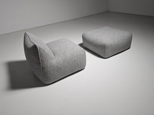 Le Bambole Lounge Chair with Ottoman in Grey/Silver Bouclé by Mario Bellini for B&b Italy, 1970s, Set of 2