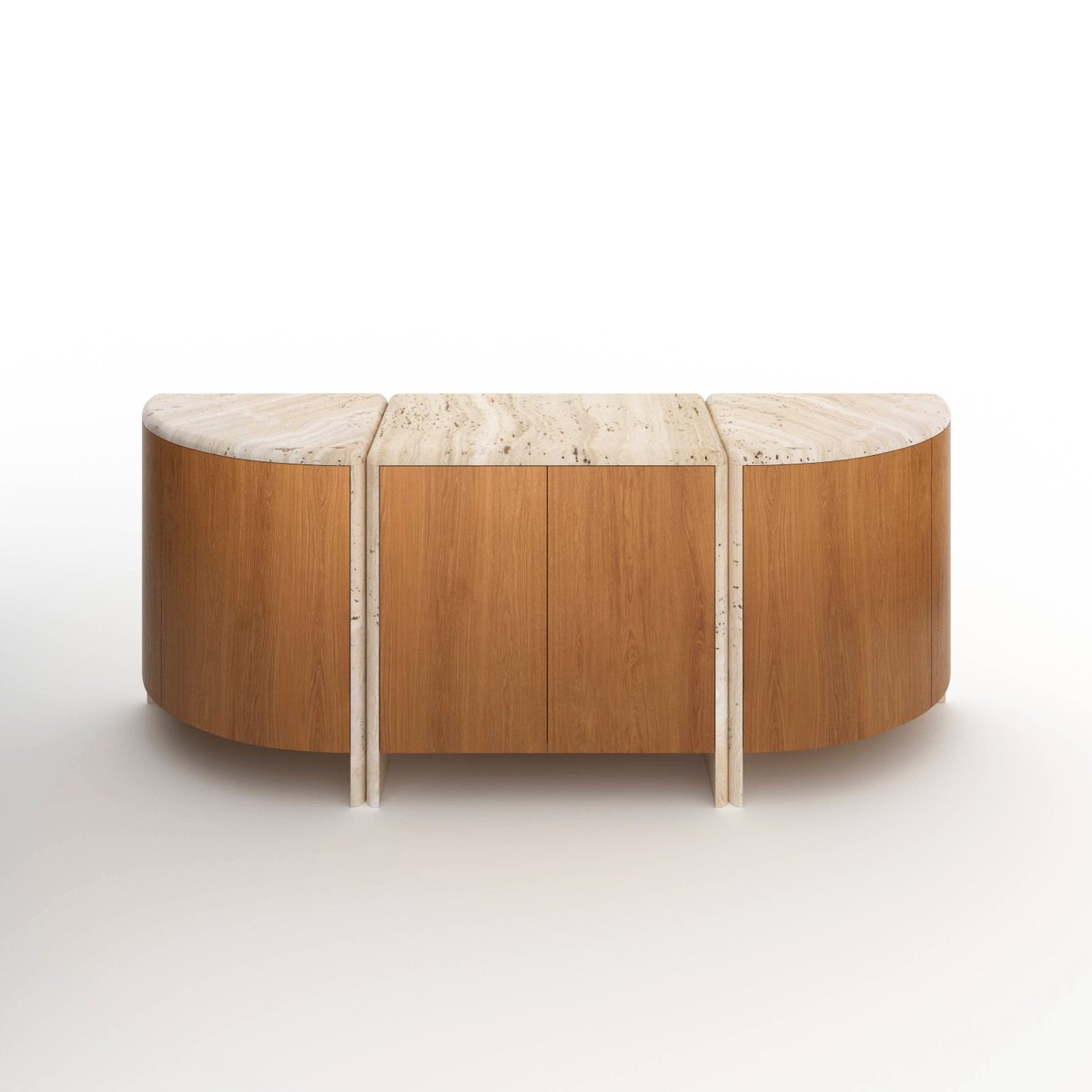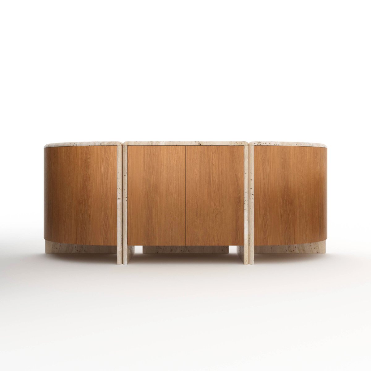 Lily Rounded Credenza in Honed Unfilled Navona Travertine and Oak by Fred&Juul