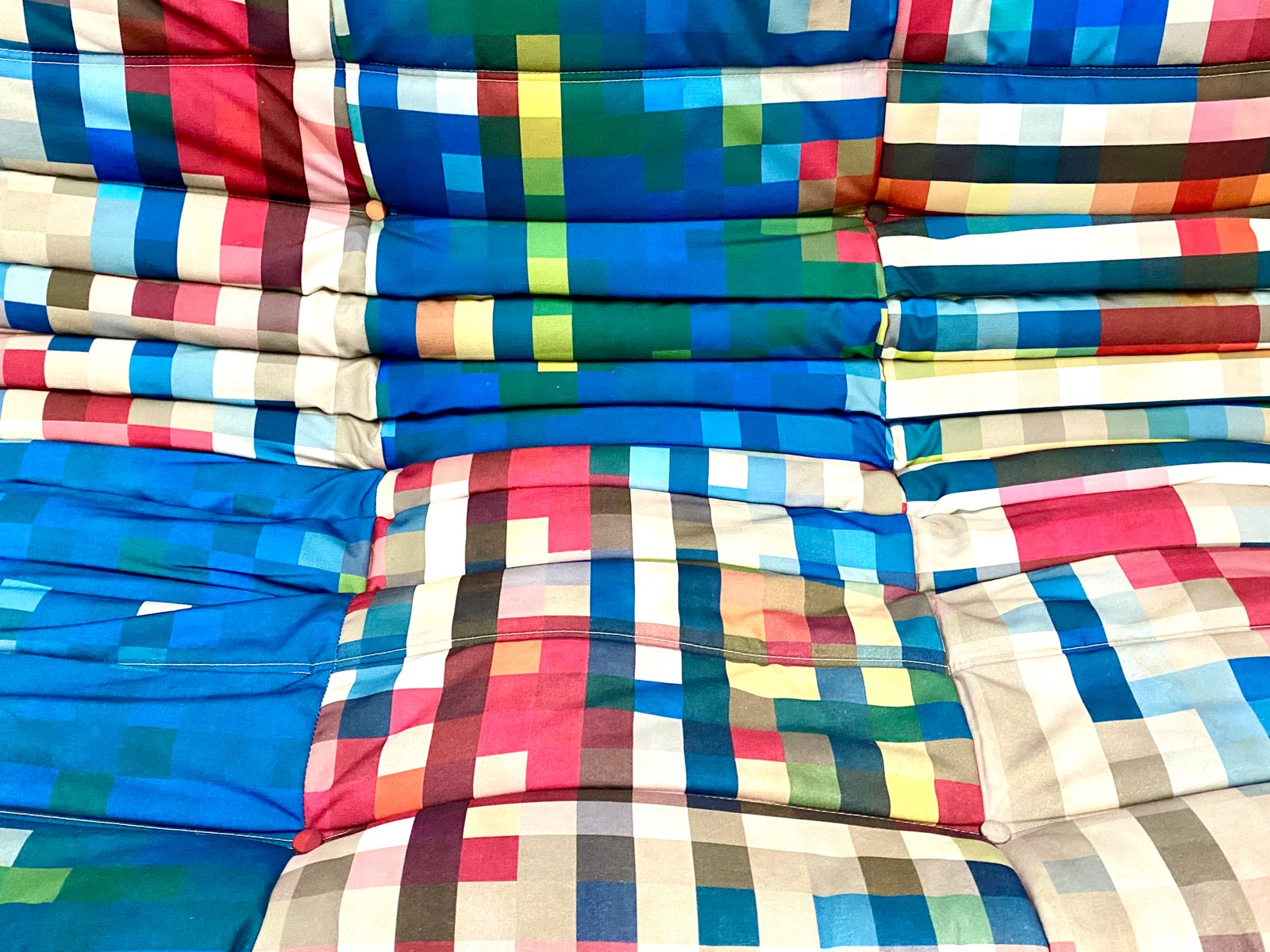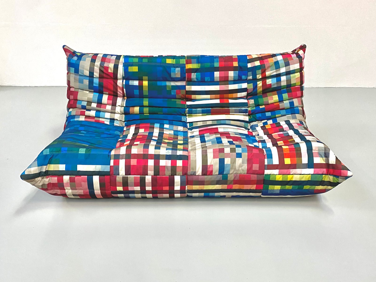 French Togo 3-Seater Sofa in Beige Corduroy attributed to Michel Ducaroy for Ligne Roset, 1970s