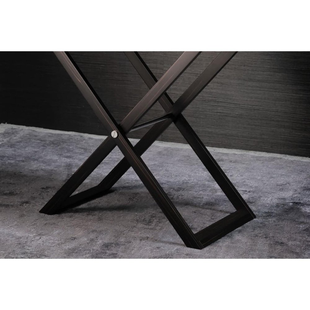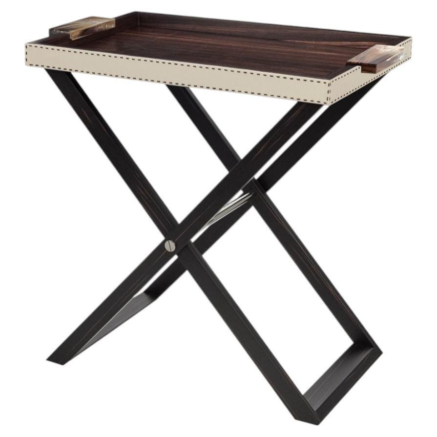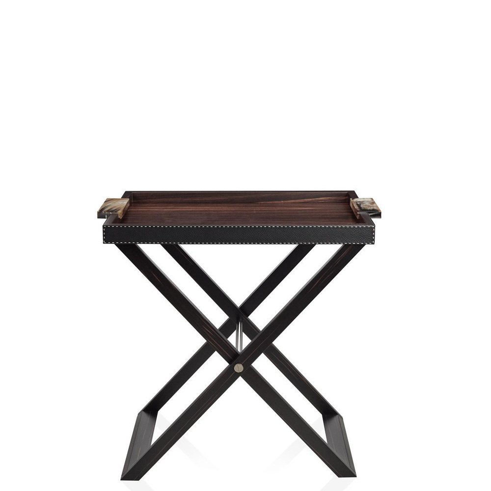 Lipari Butlers Serving Table with Tray in Ebony Veneer and Leather by Arcahorn