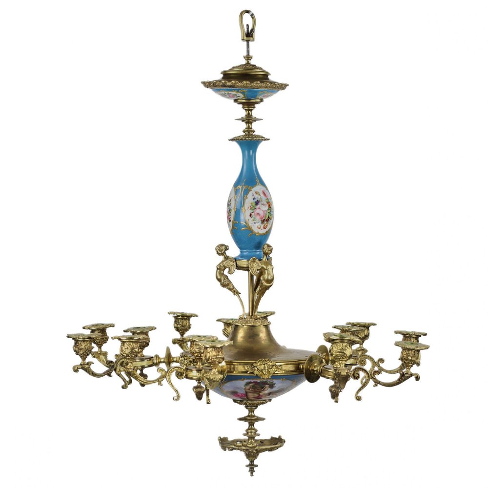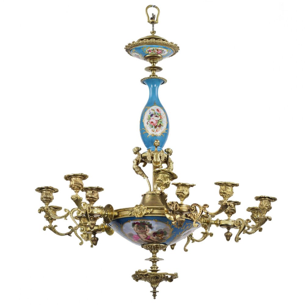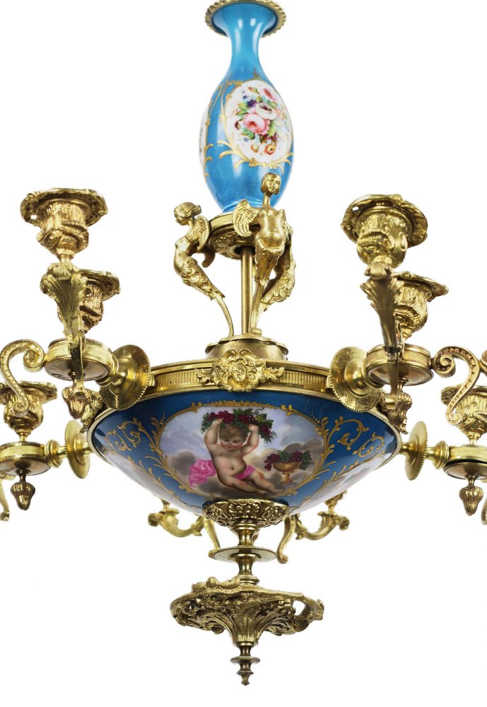 Louis XVI Style Sevres Porcelain Chandelier for 15 Candles