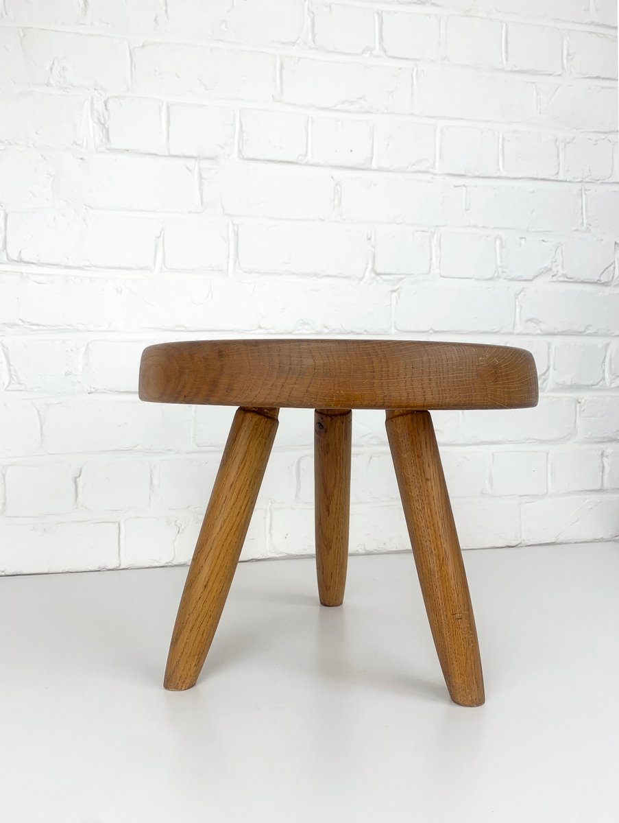 Low Berger Stool in Ash by Charlotte Perriand for Steph Simon Paris, 1950s