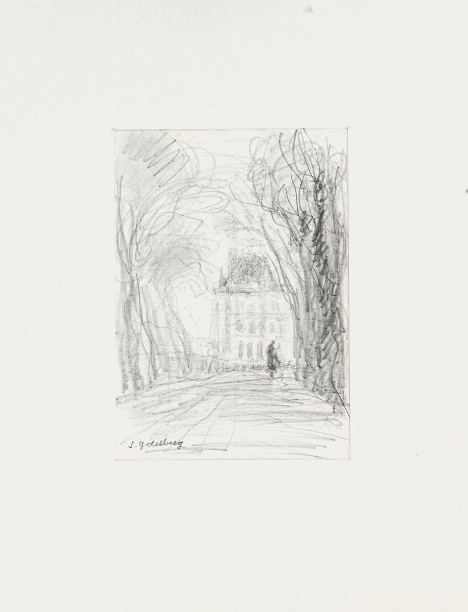 Maison - Original Pencil Drawing by S. Goldberg - Mid 20th Century Mid 20th Century