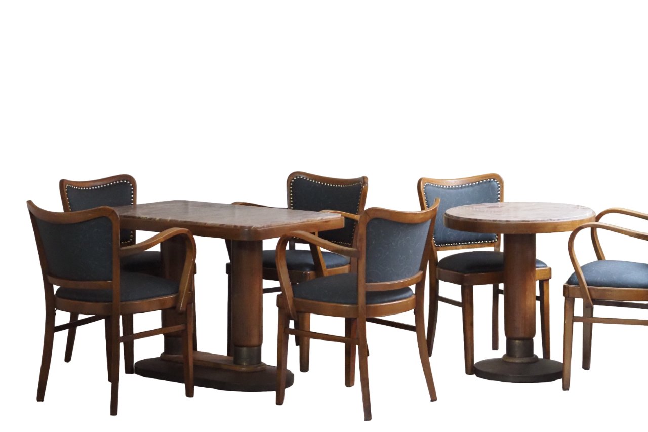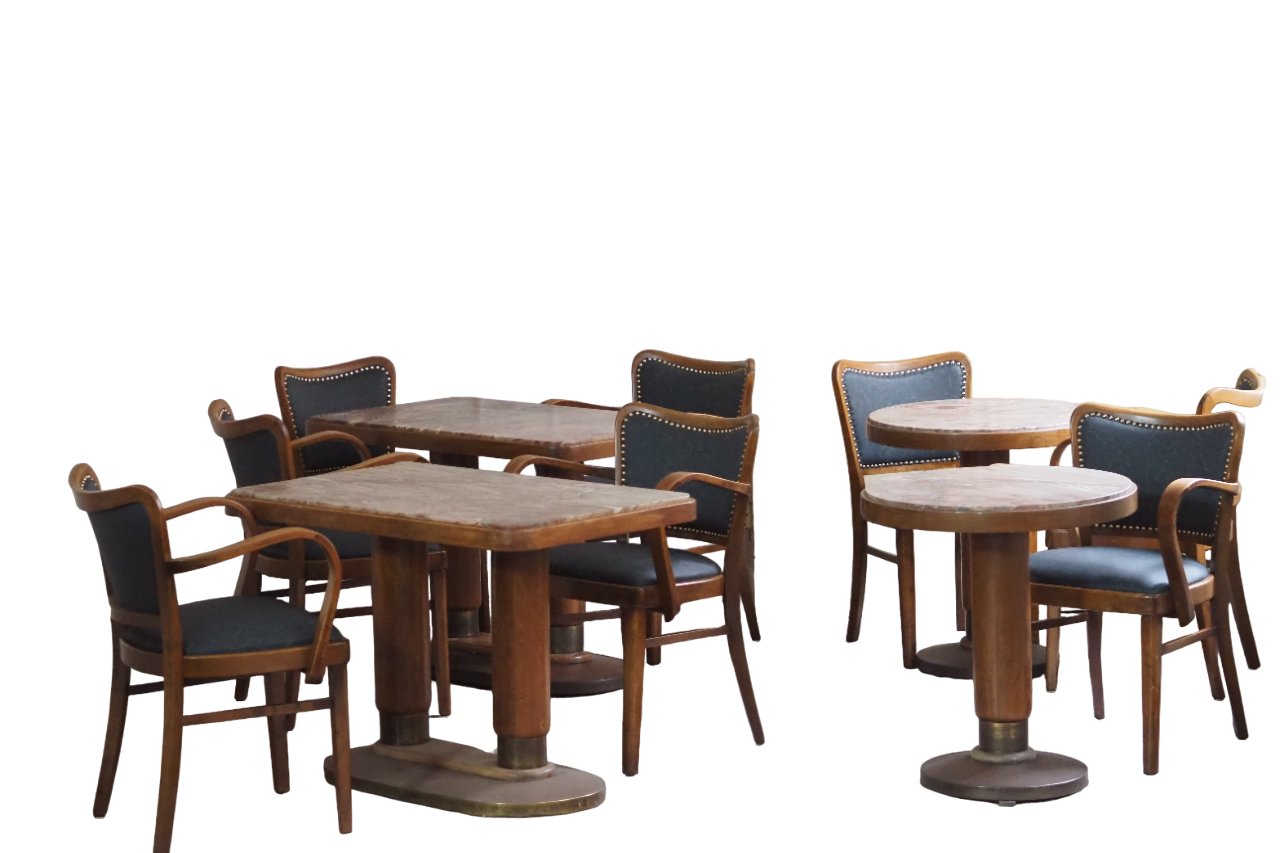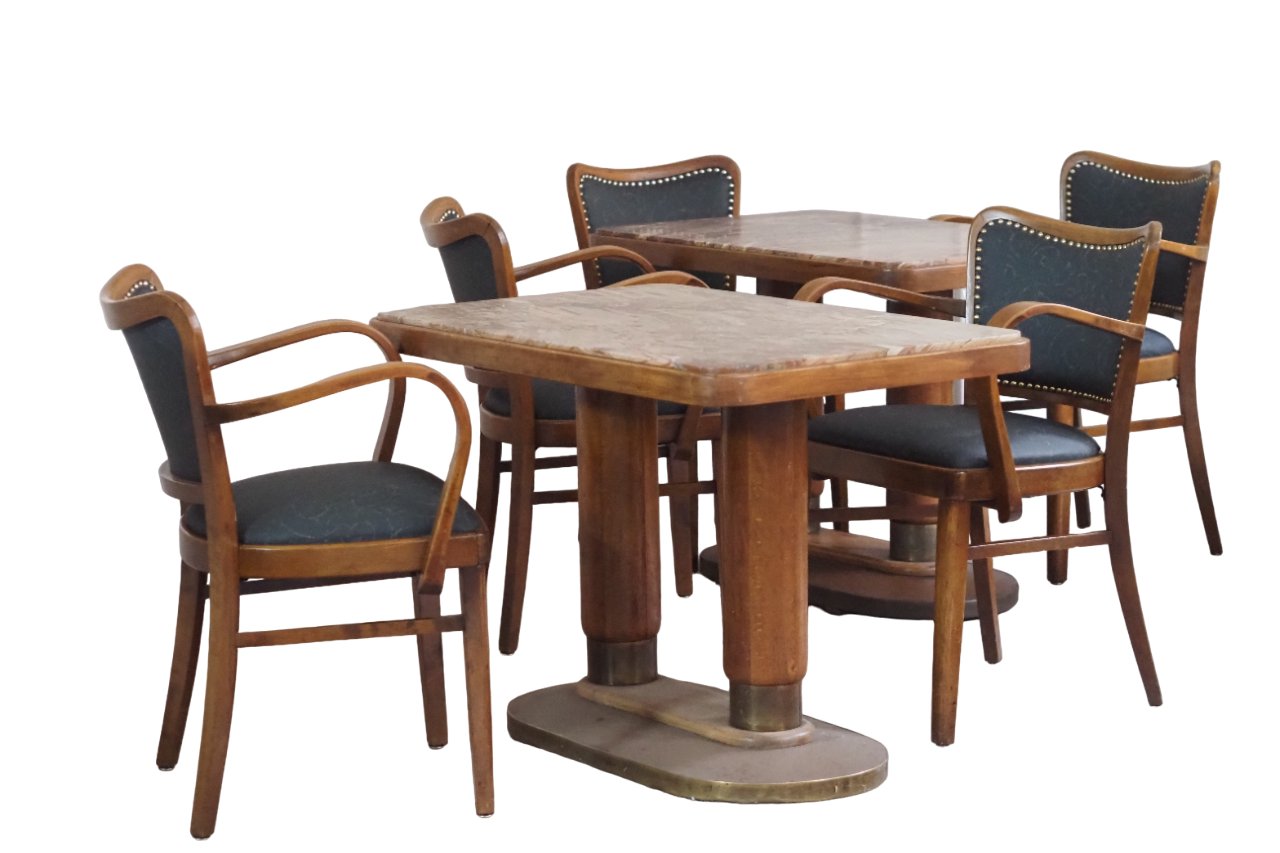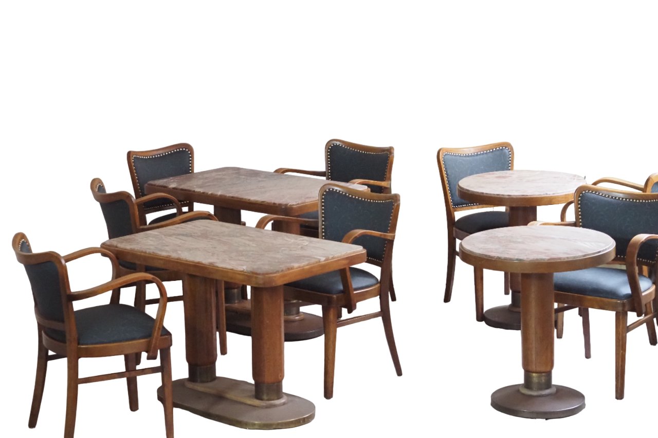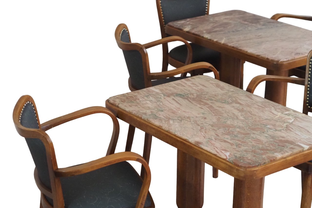 Marble Cafe Table and Chairs in Bentwood, Set of 12