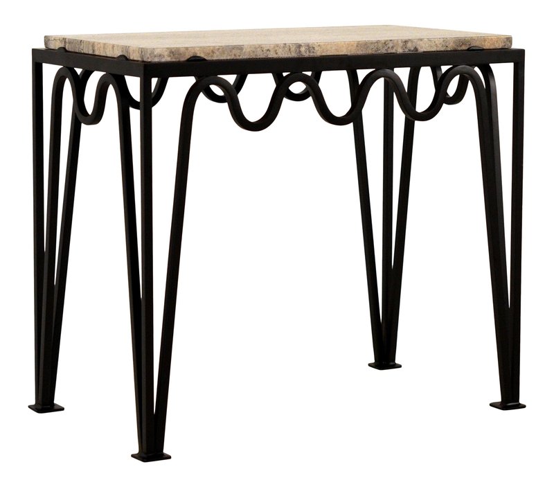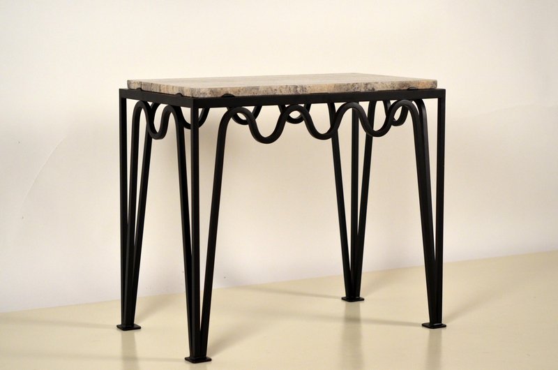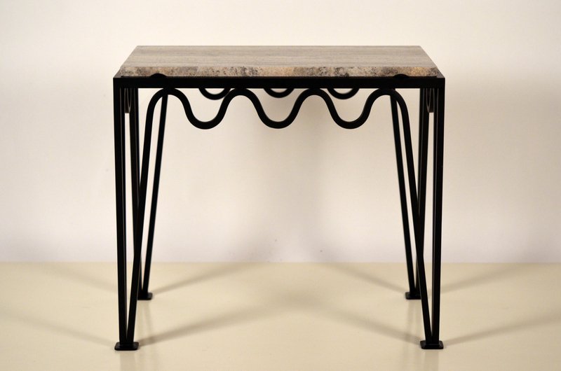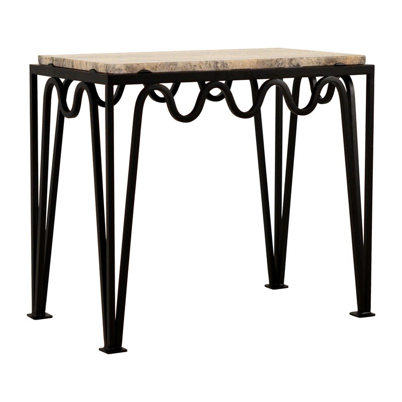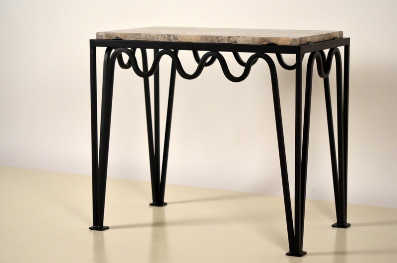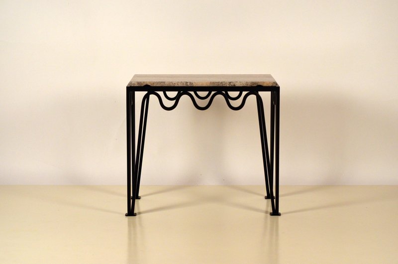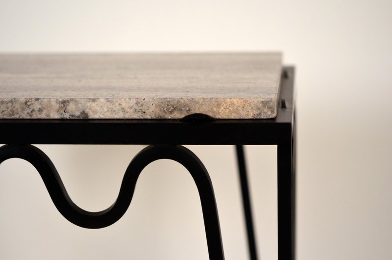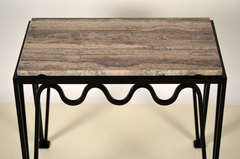 Méander Black Iron and Silver Travertine Side Table by Atelier Cabanel