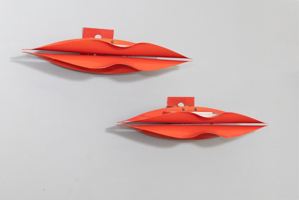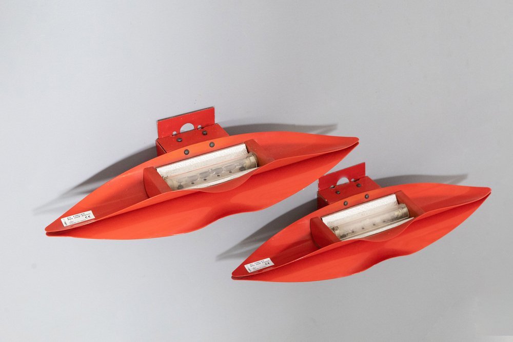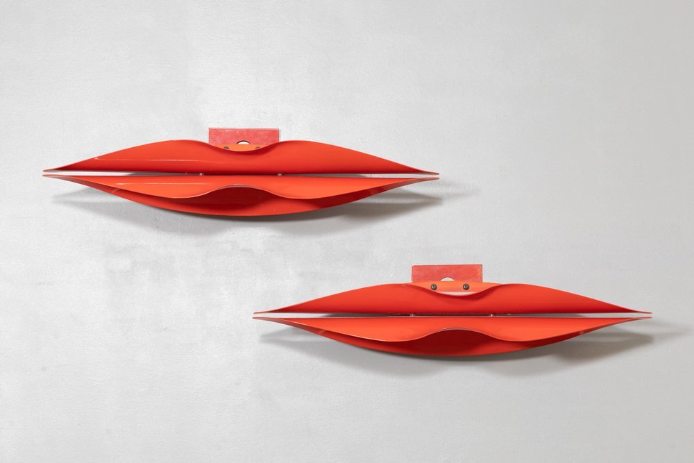 Metal Lip Wall Lamps, Italy, 1980s, Set of 2