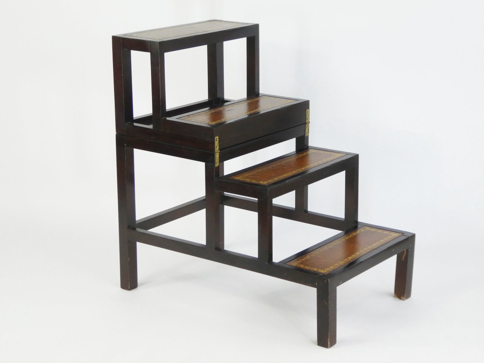 Metamorphic Victorian Wooden Library Stairs in Leather
