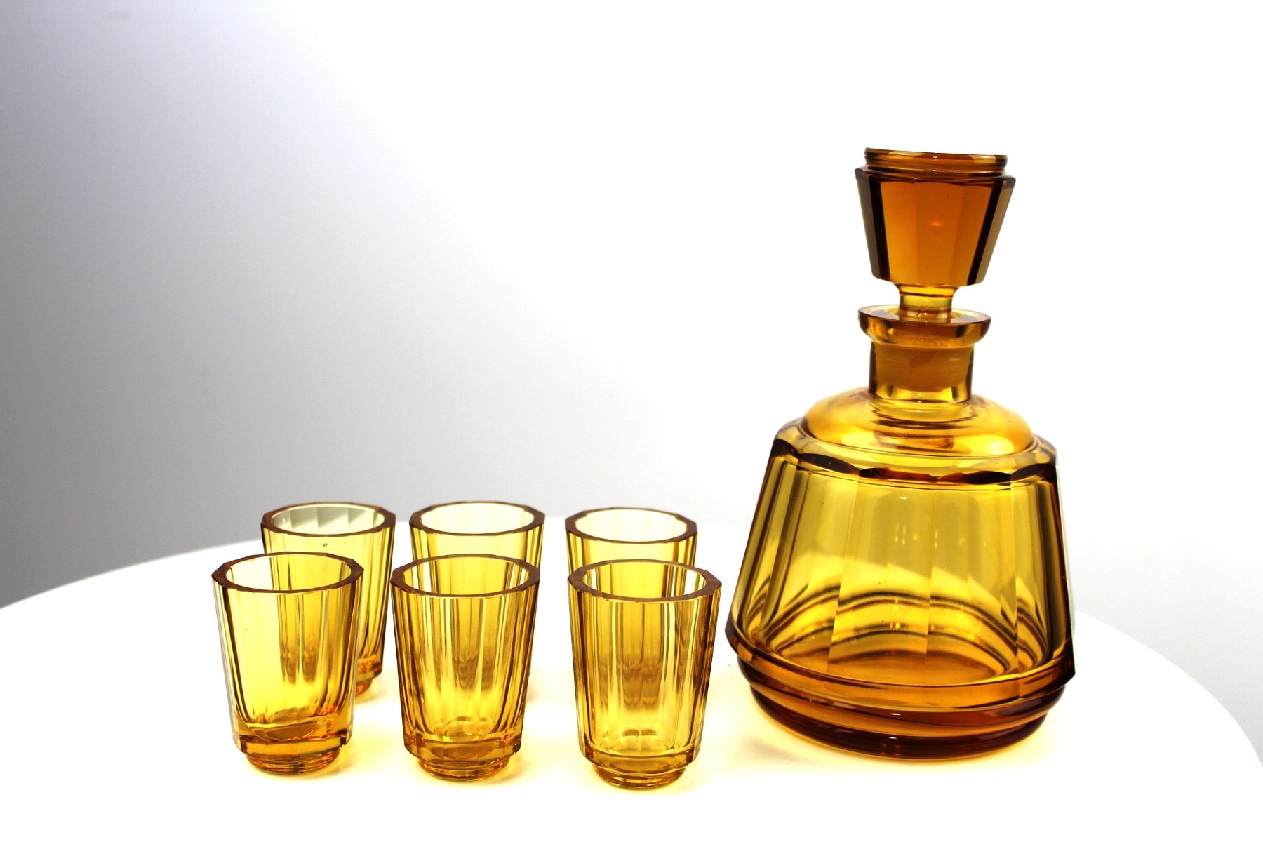 Mid-Century Amber Glass Liqueur Set from Moser Karlsbad, Set of 7