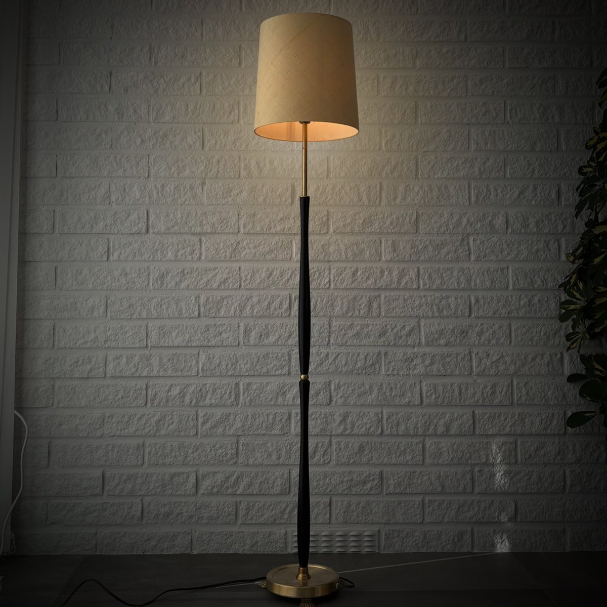 Mid-Century Brass and Silk Floor Lamp from Upsala Armaturfabrik, Sweden, 1960s