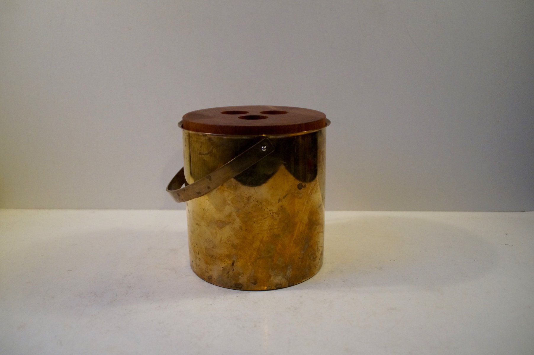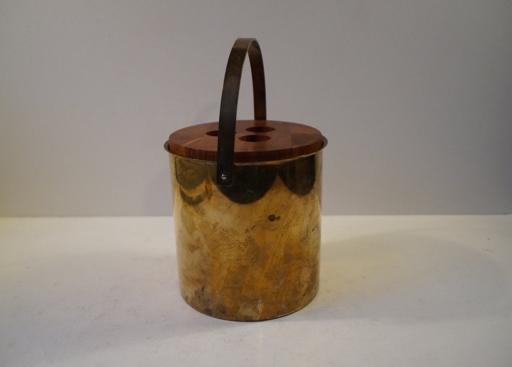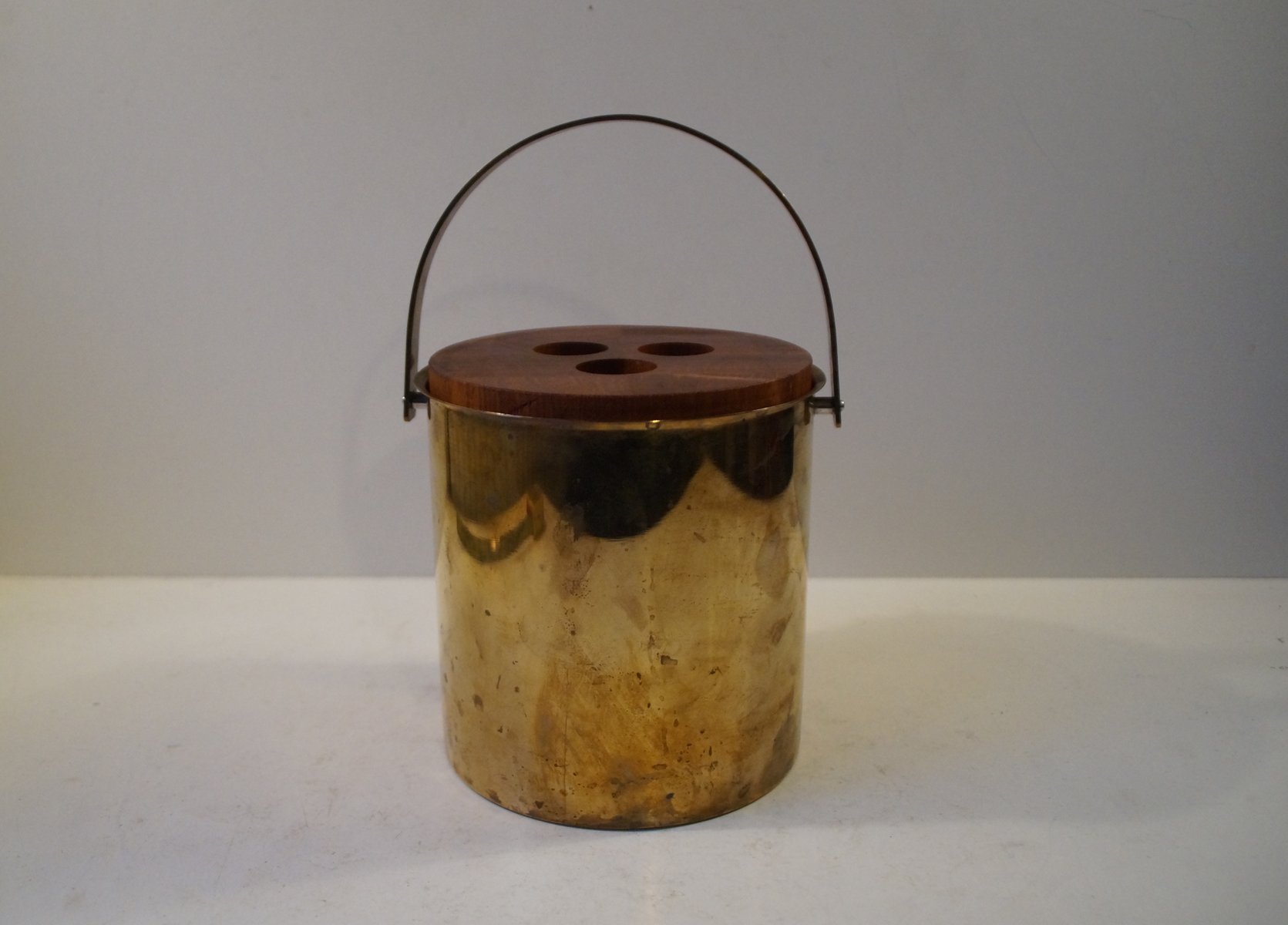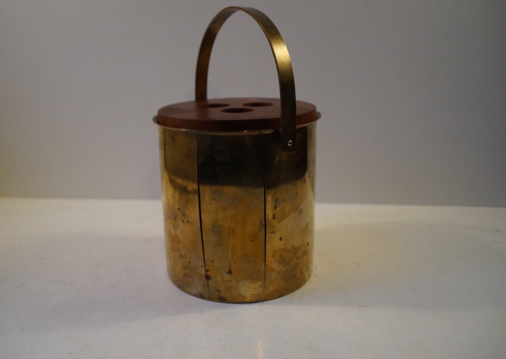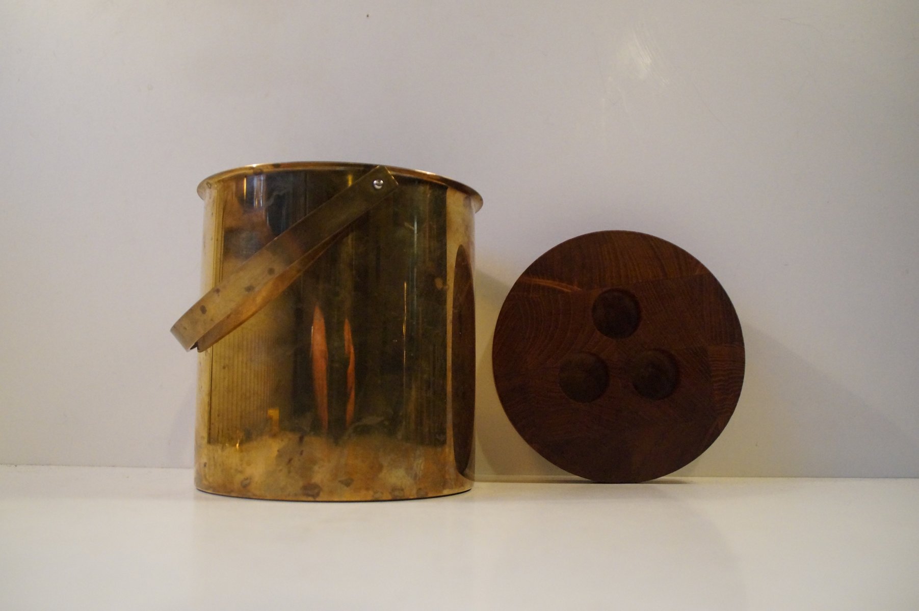 Mid-Century Brass & Teak Cylinda-Line Ice Bucket by Arne Jacobsen for Stelton, 1960s