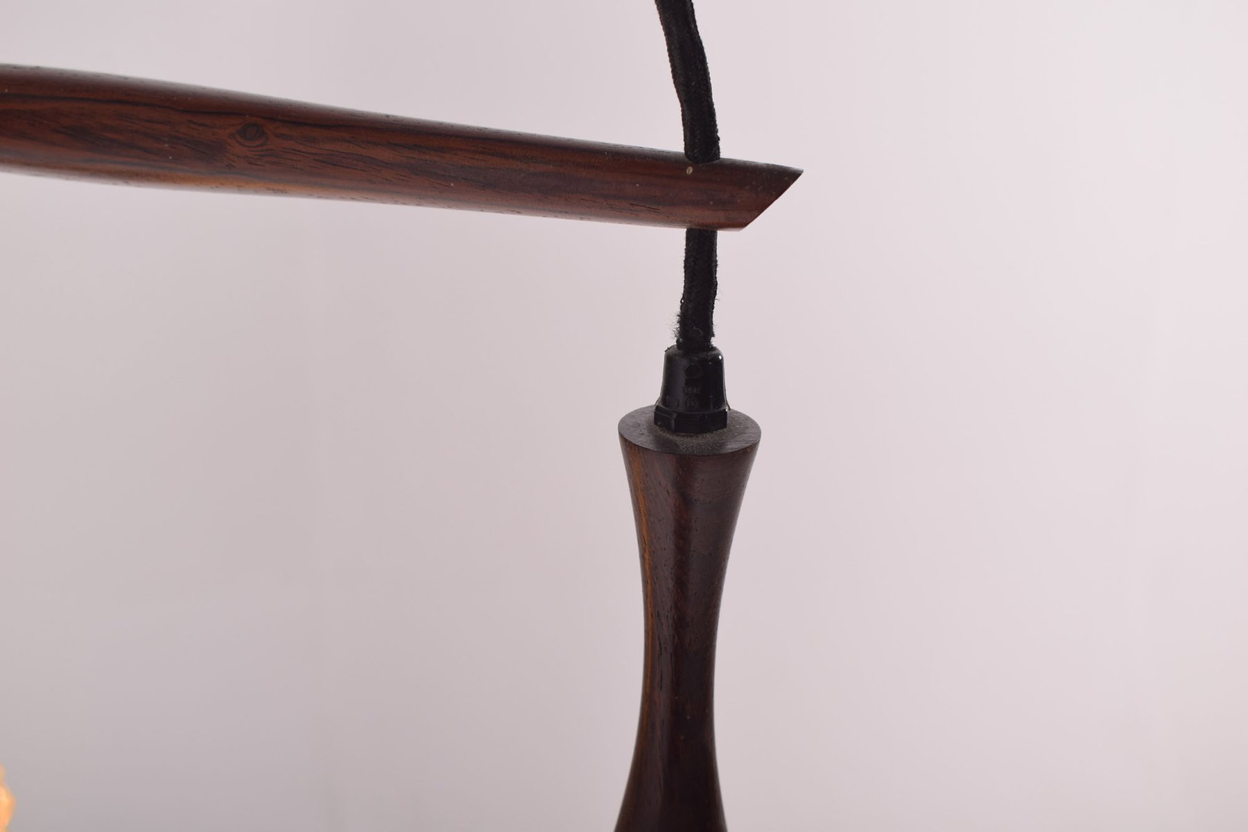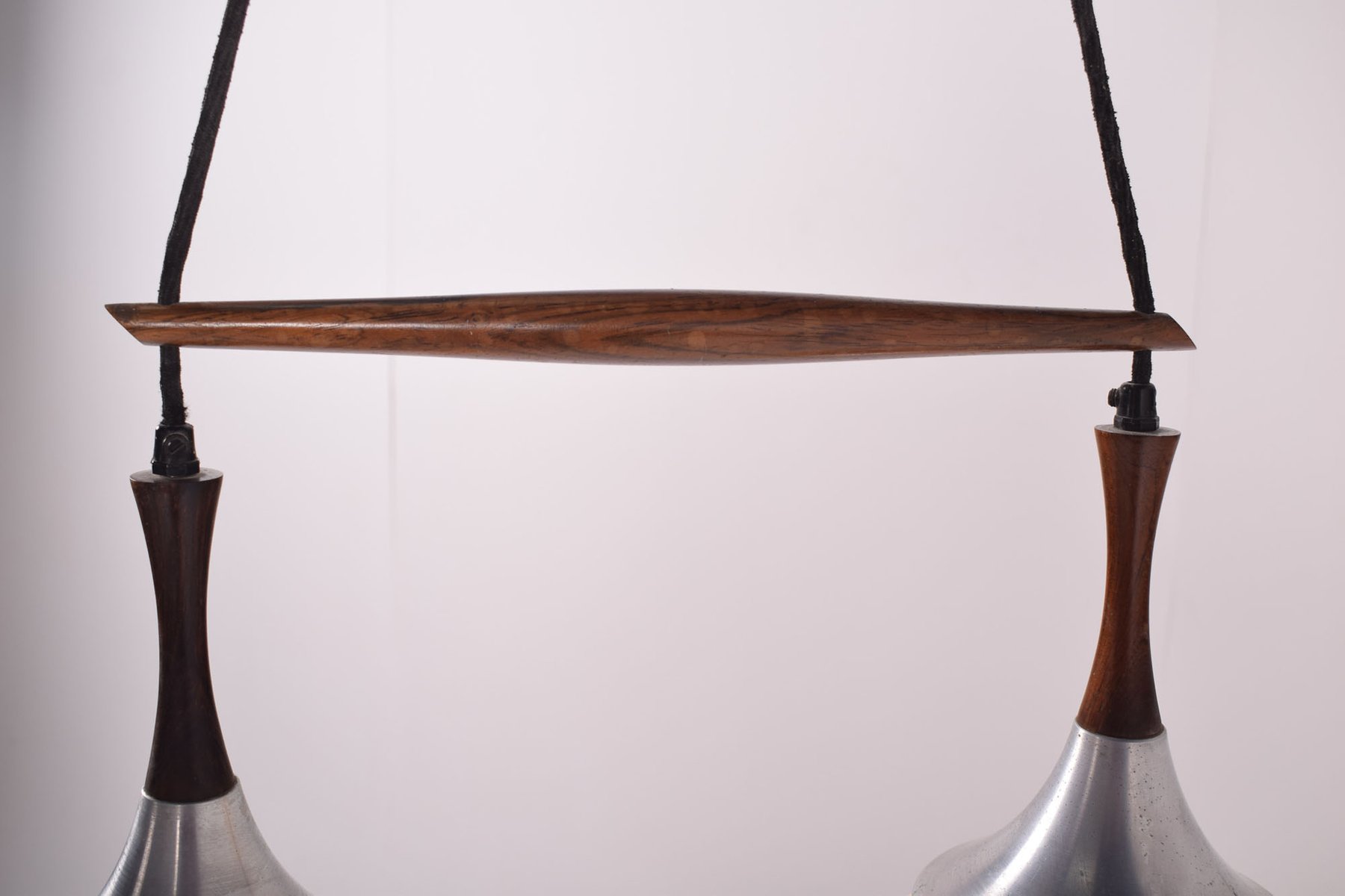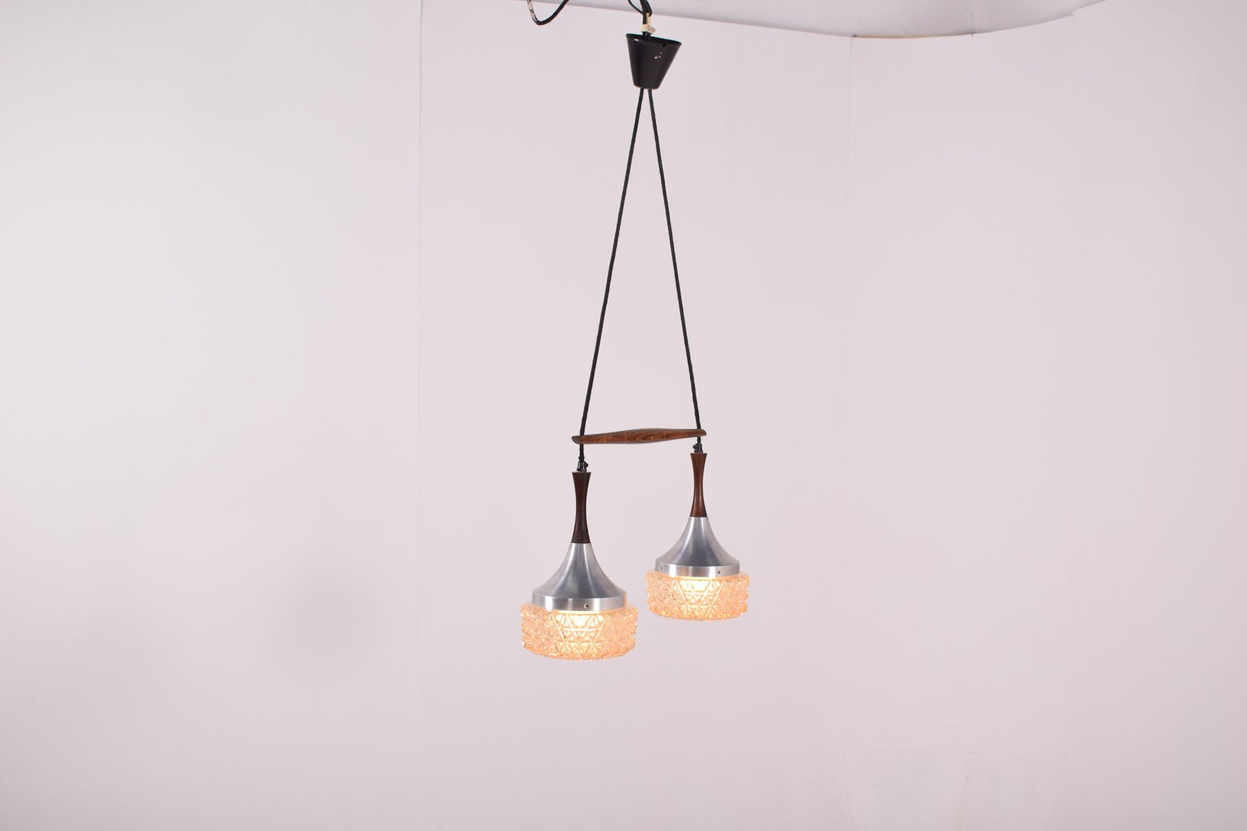 Mid-Century Danish Rosewood, Metal and Glass Dual Pendant Lamp, 1970