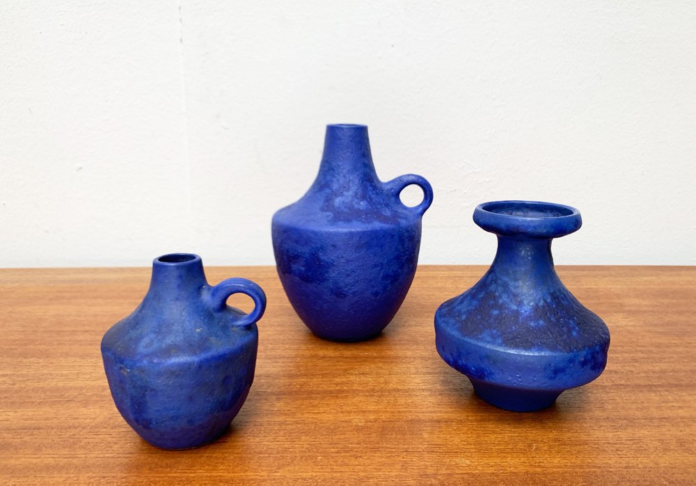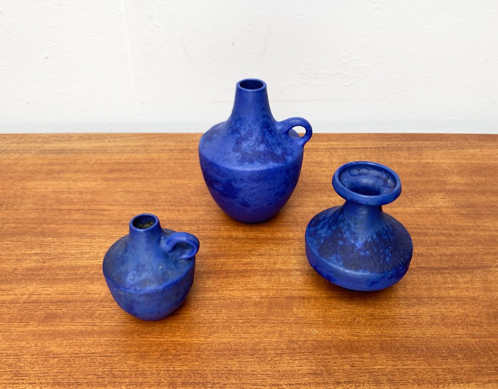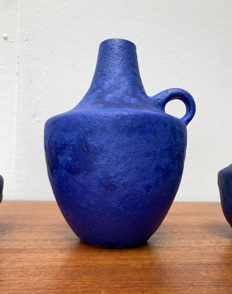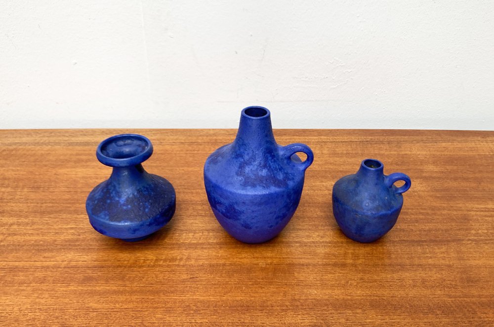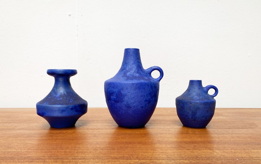Mid-Century German Minimalist Cobalt Blue Vases from Hartwig Heyne Pottery, 1960s, Set of 3