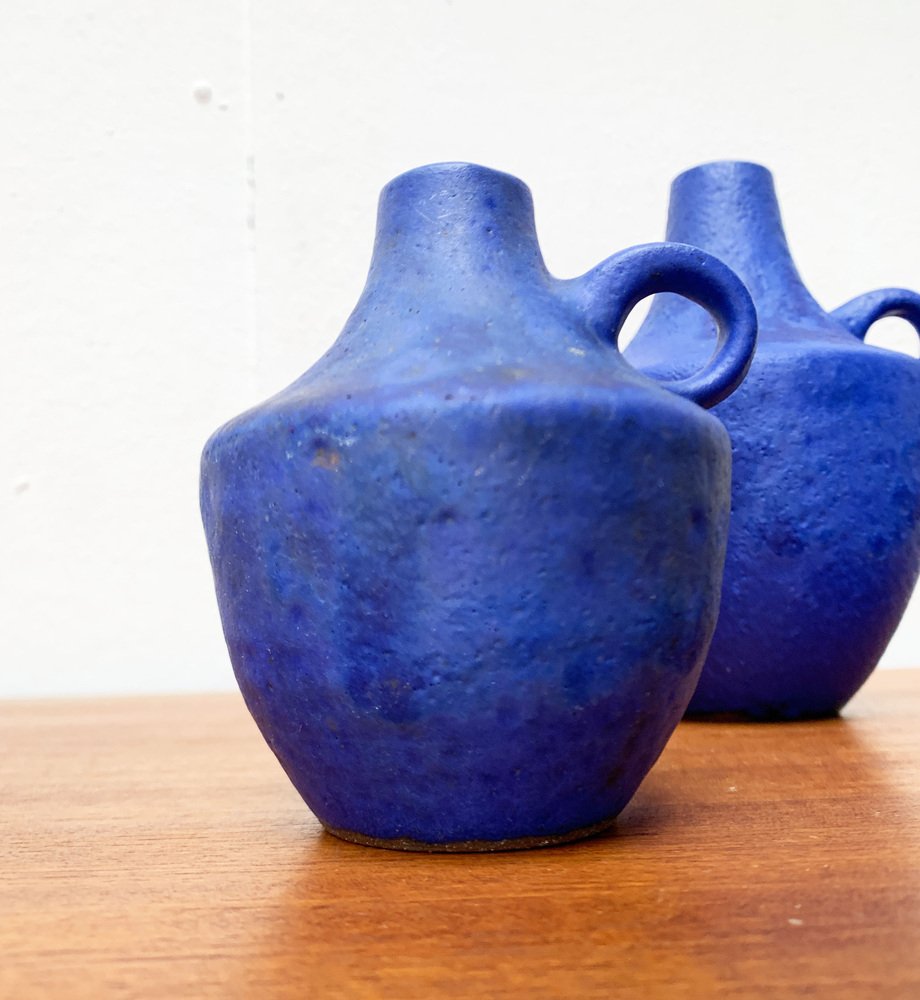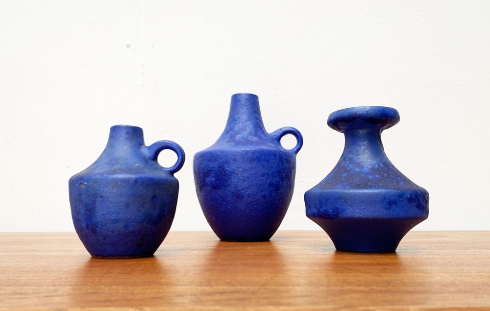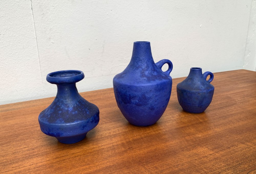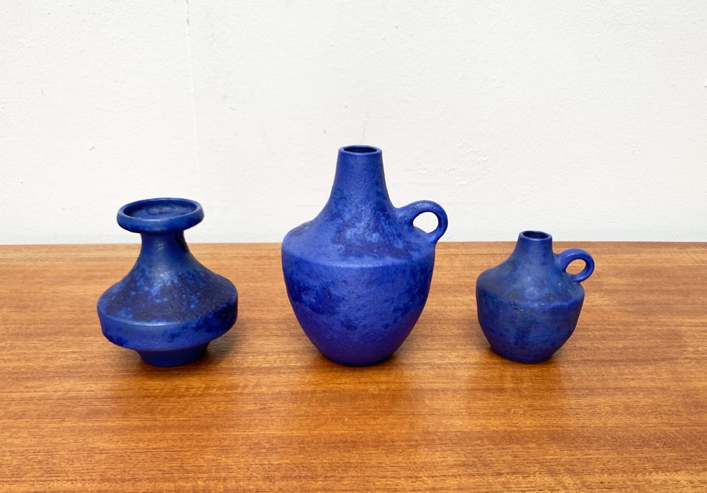 Mid-Century German Minimalist Cobalt Blue Vases from Hartwig Heyne Pottery, 1960s, Set of 3
