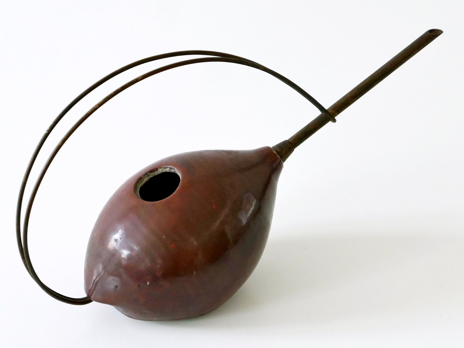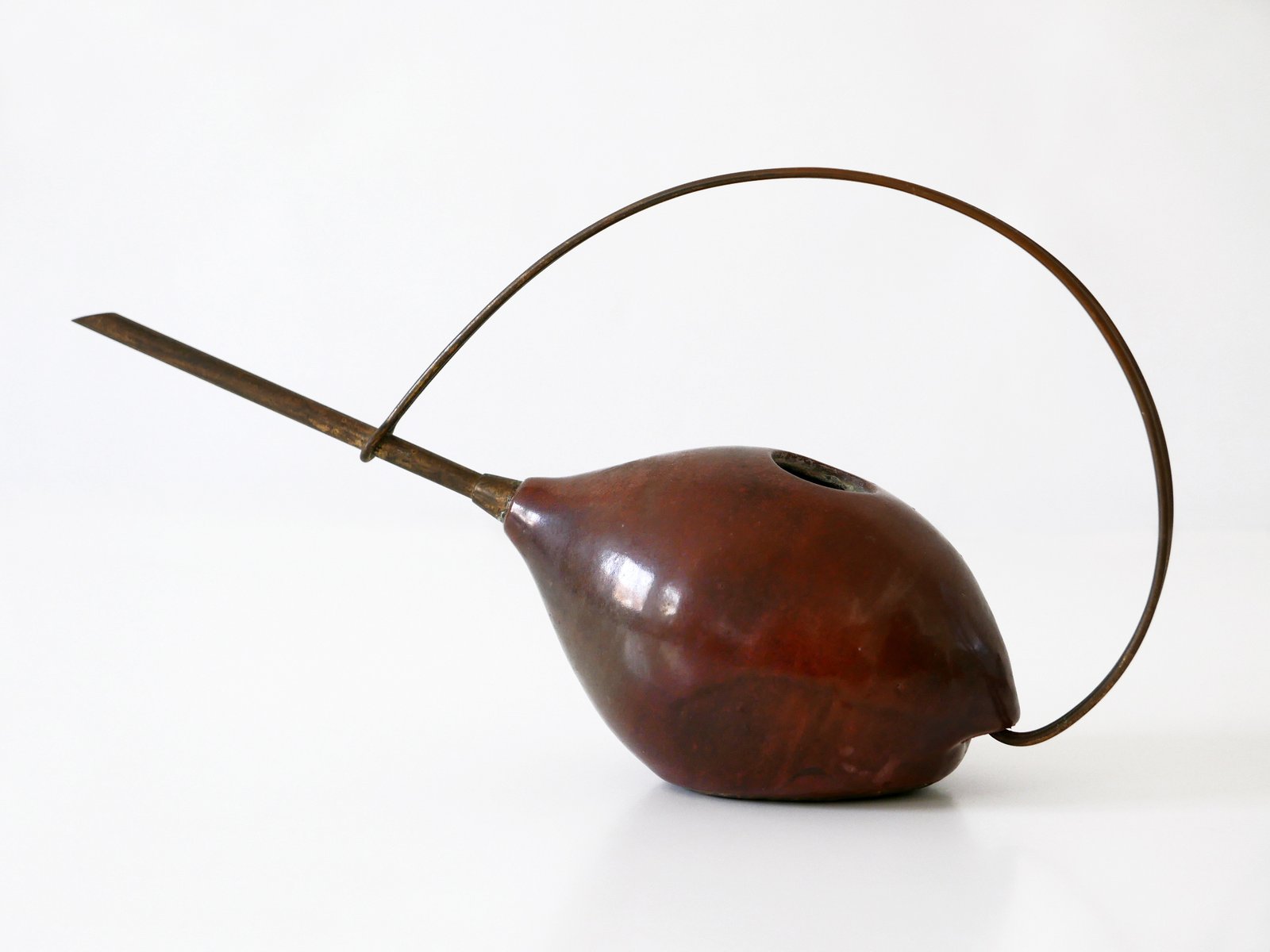 Mid-Century German Modern Ceramic & Brass Watering Can, 1950s
