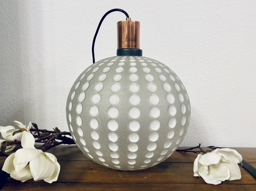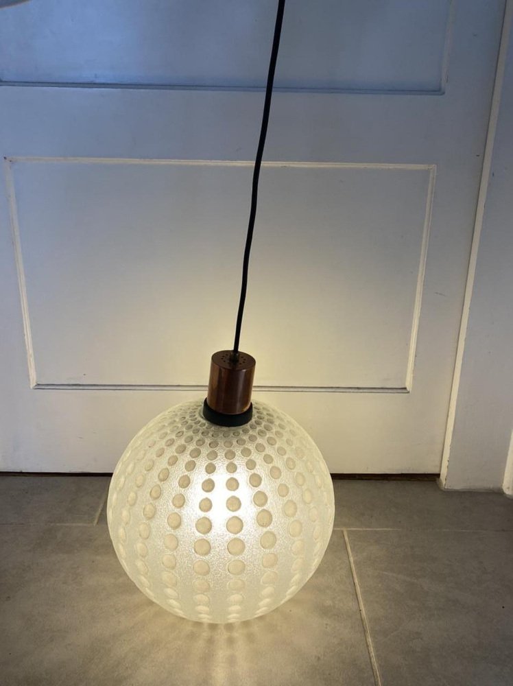 Mid-Century Golf Ball-Shaped Glass Pendant Lamp, 1960s