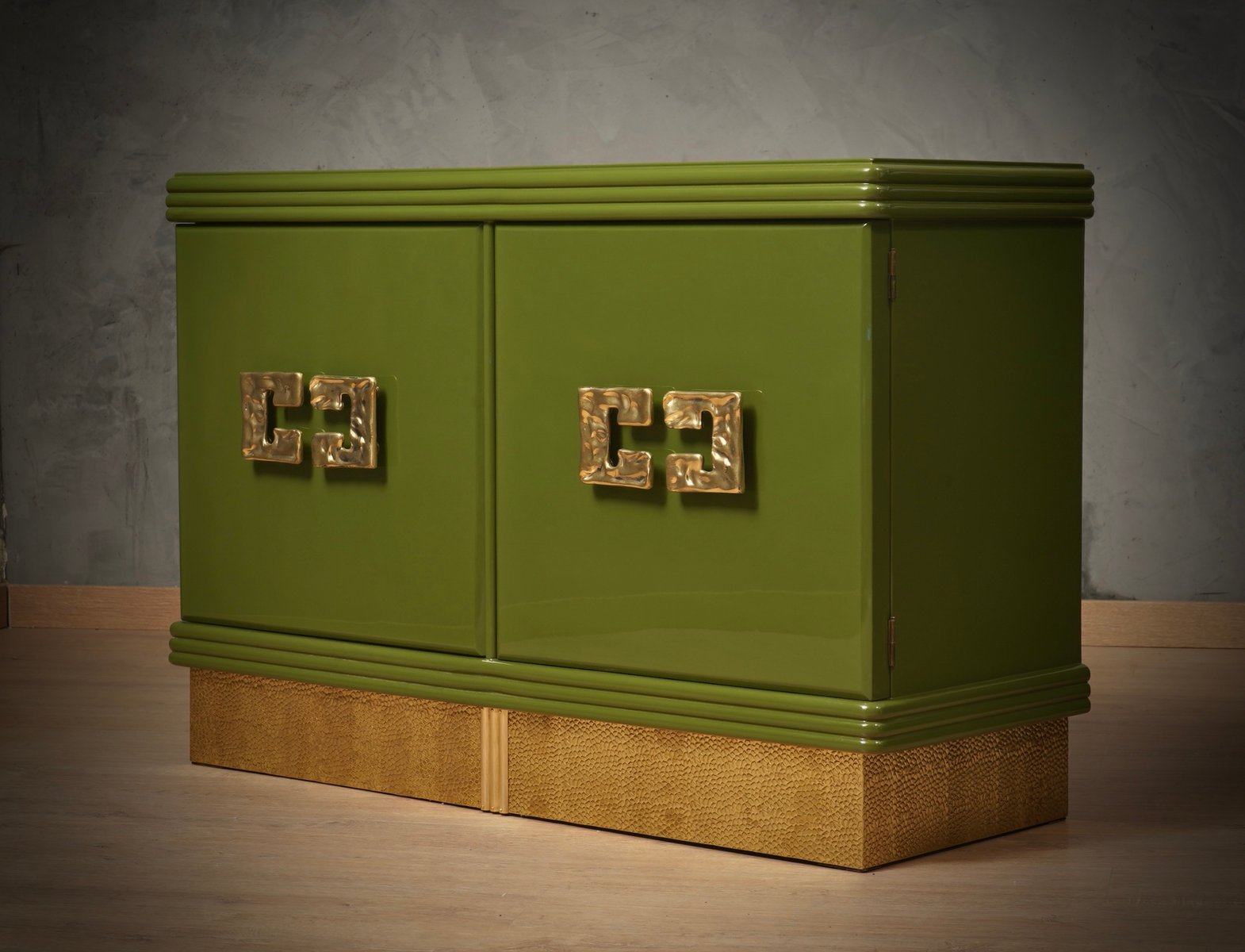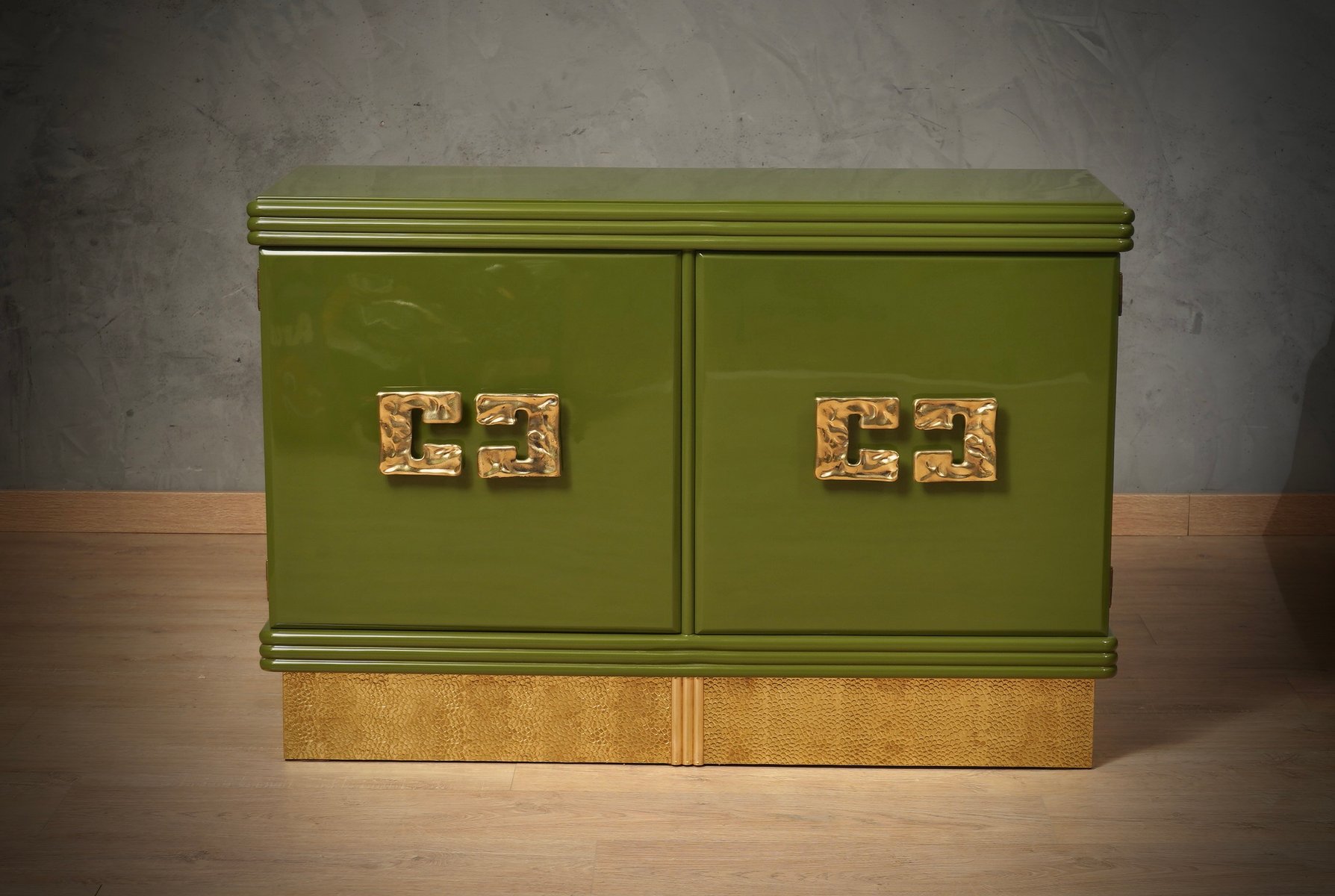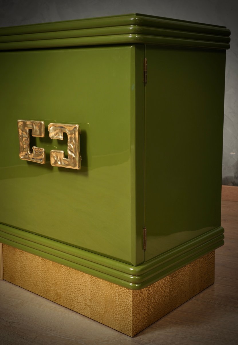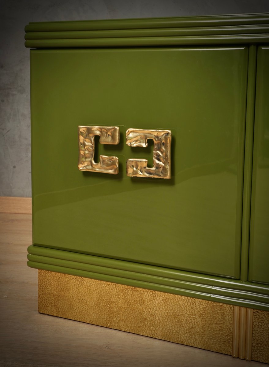 Mid-Century Green Color and Brass Sideboard, 1980s