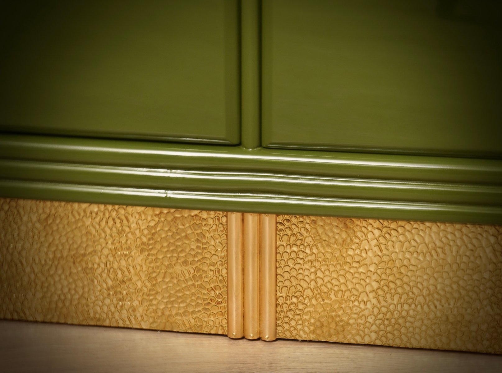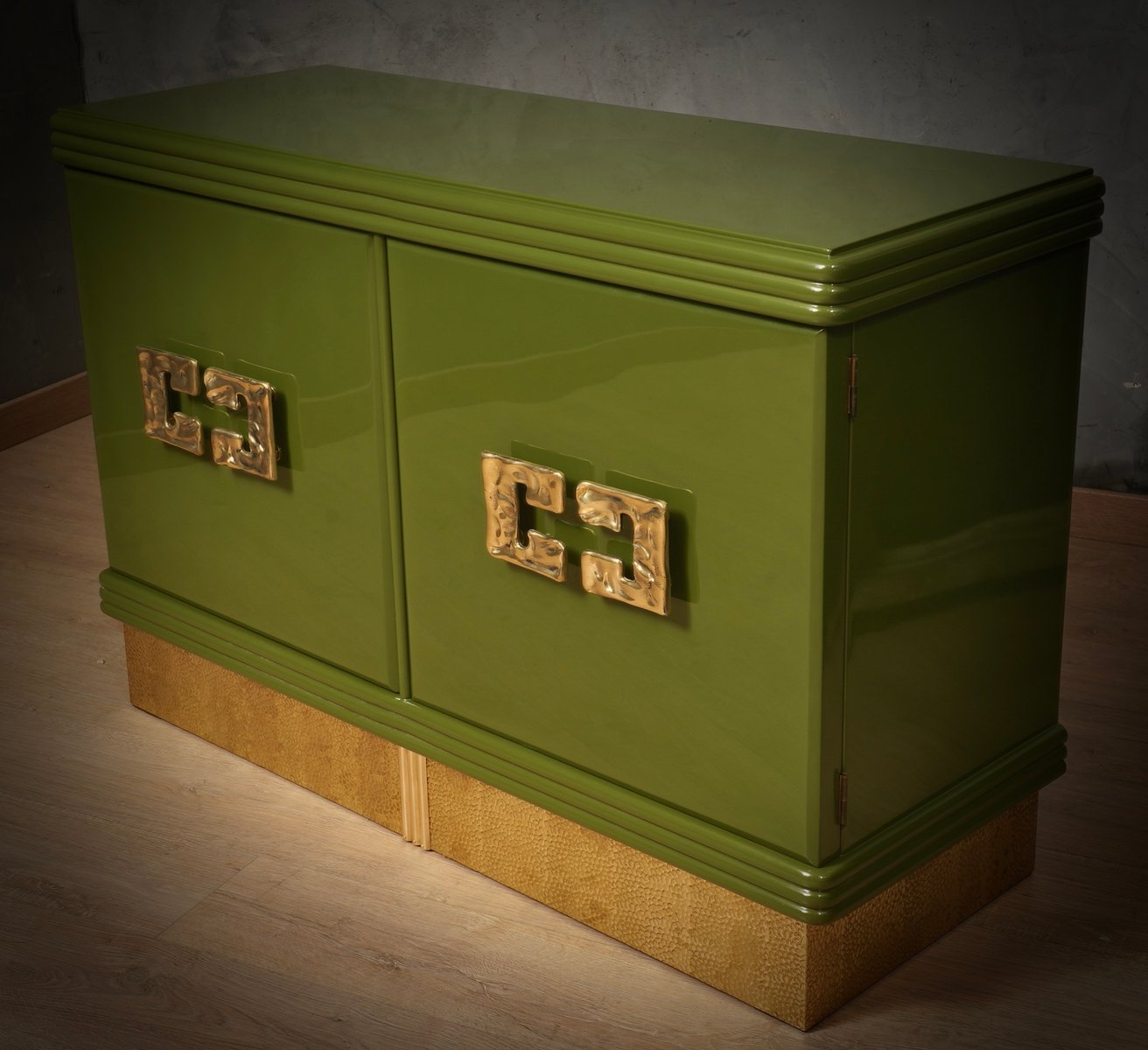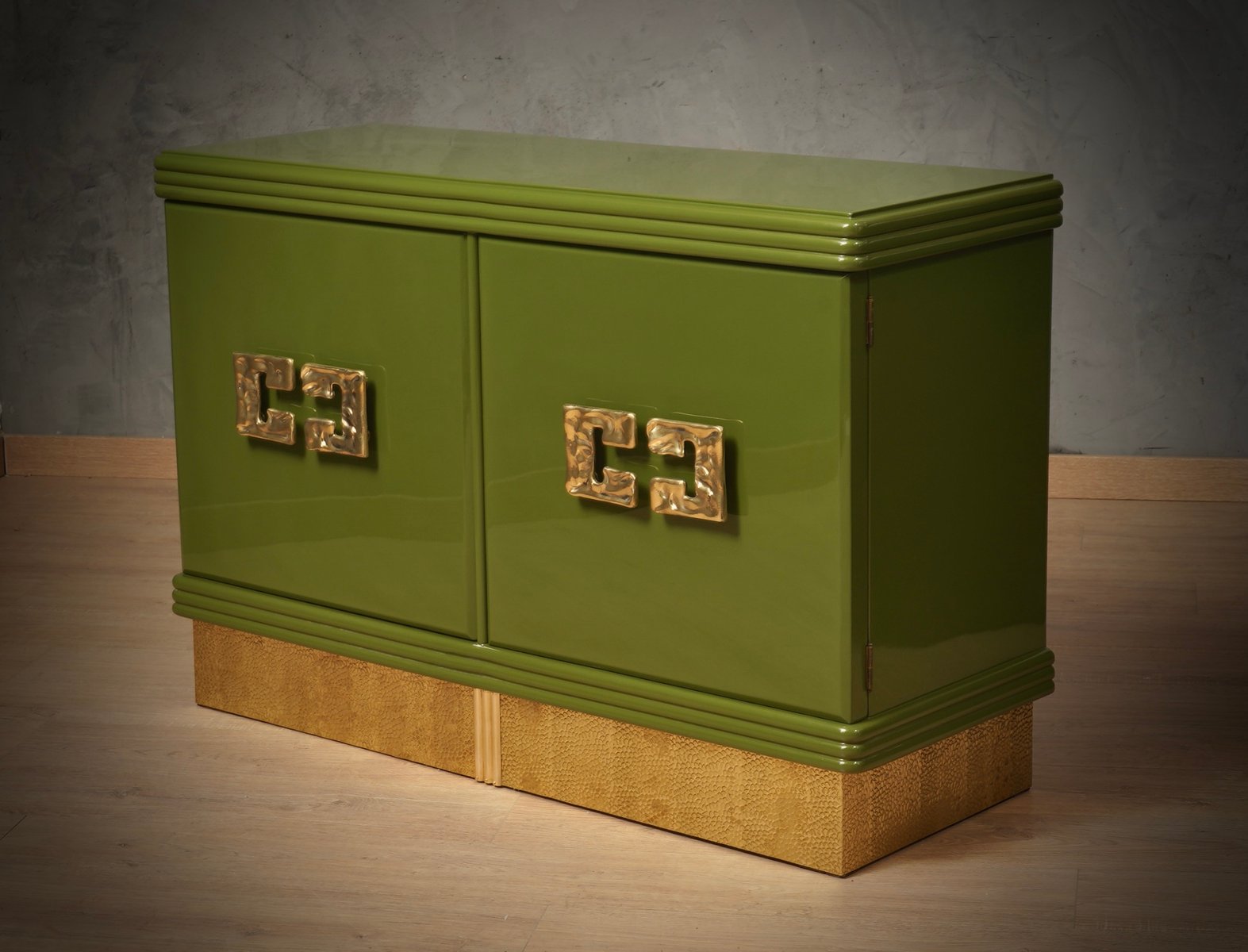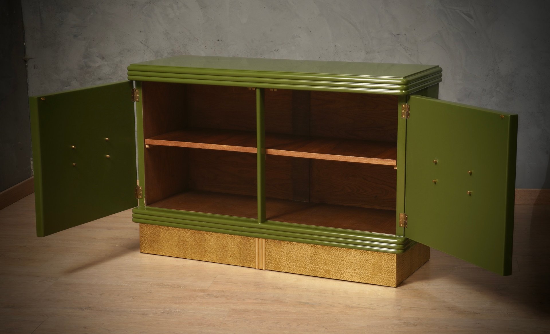 Mid-Century Green Color and Brass Sideboard, 1980s