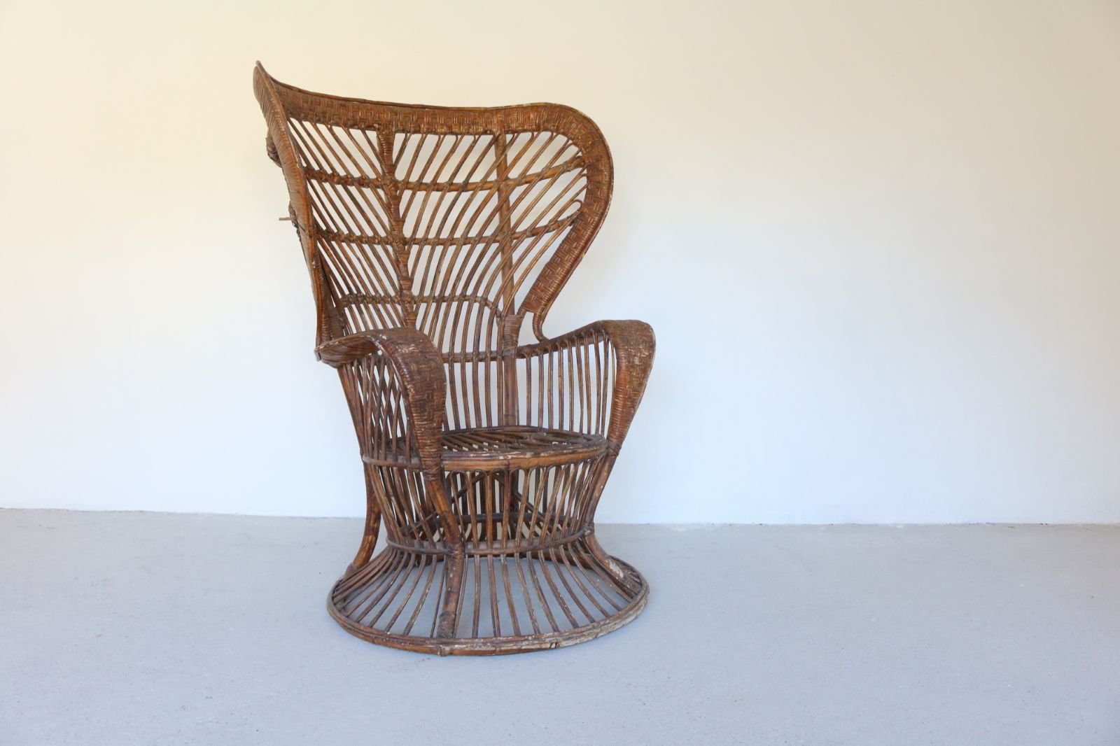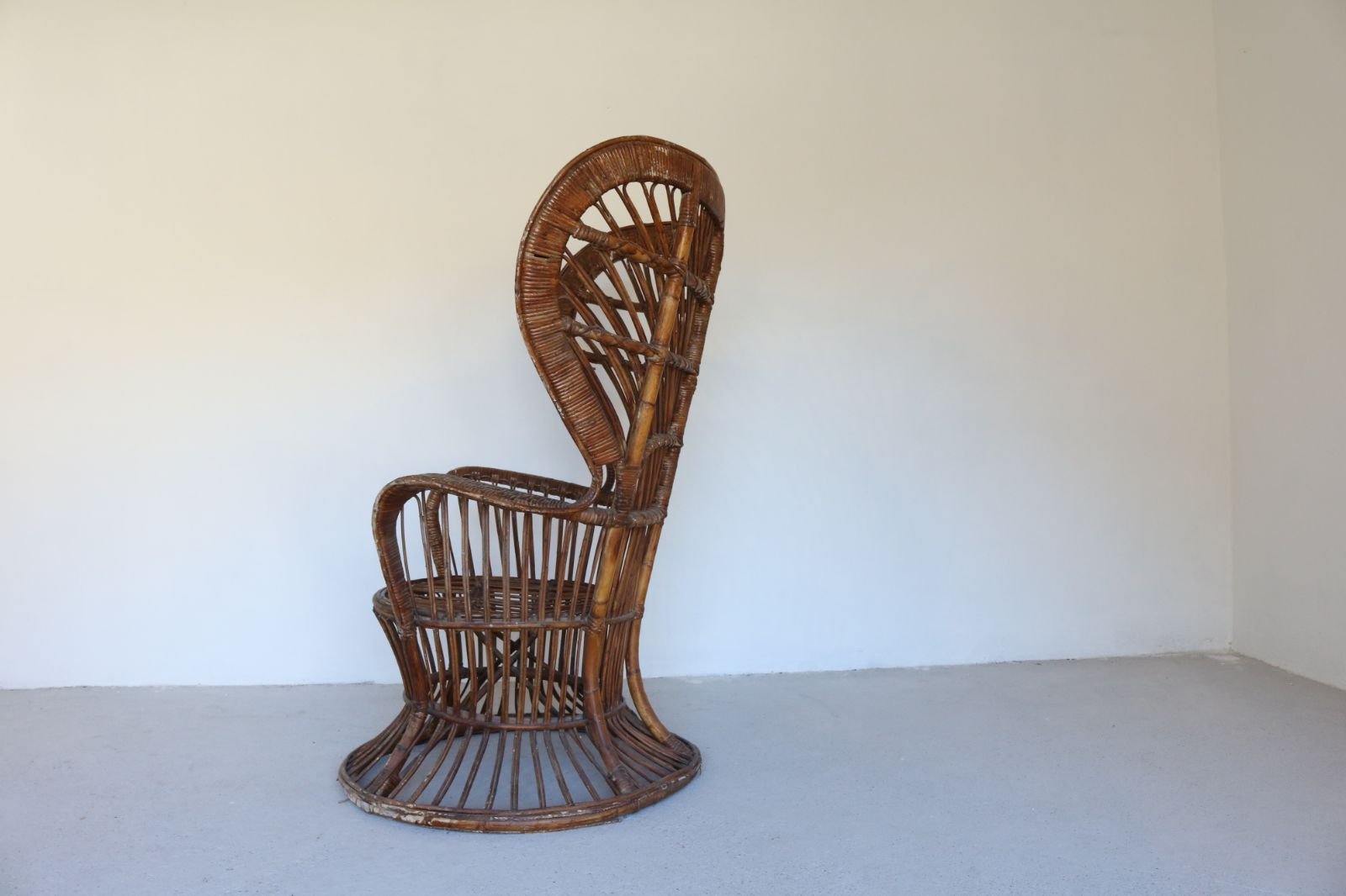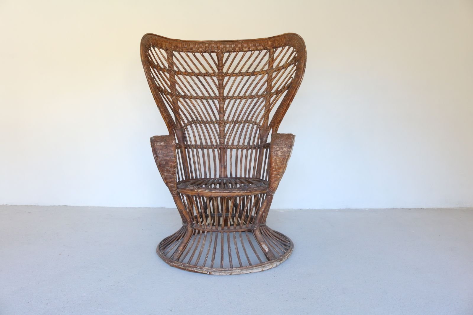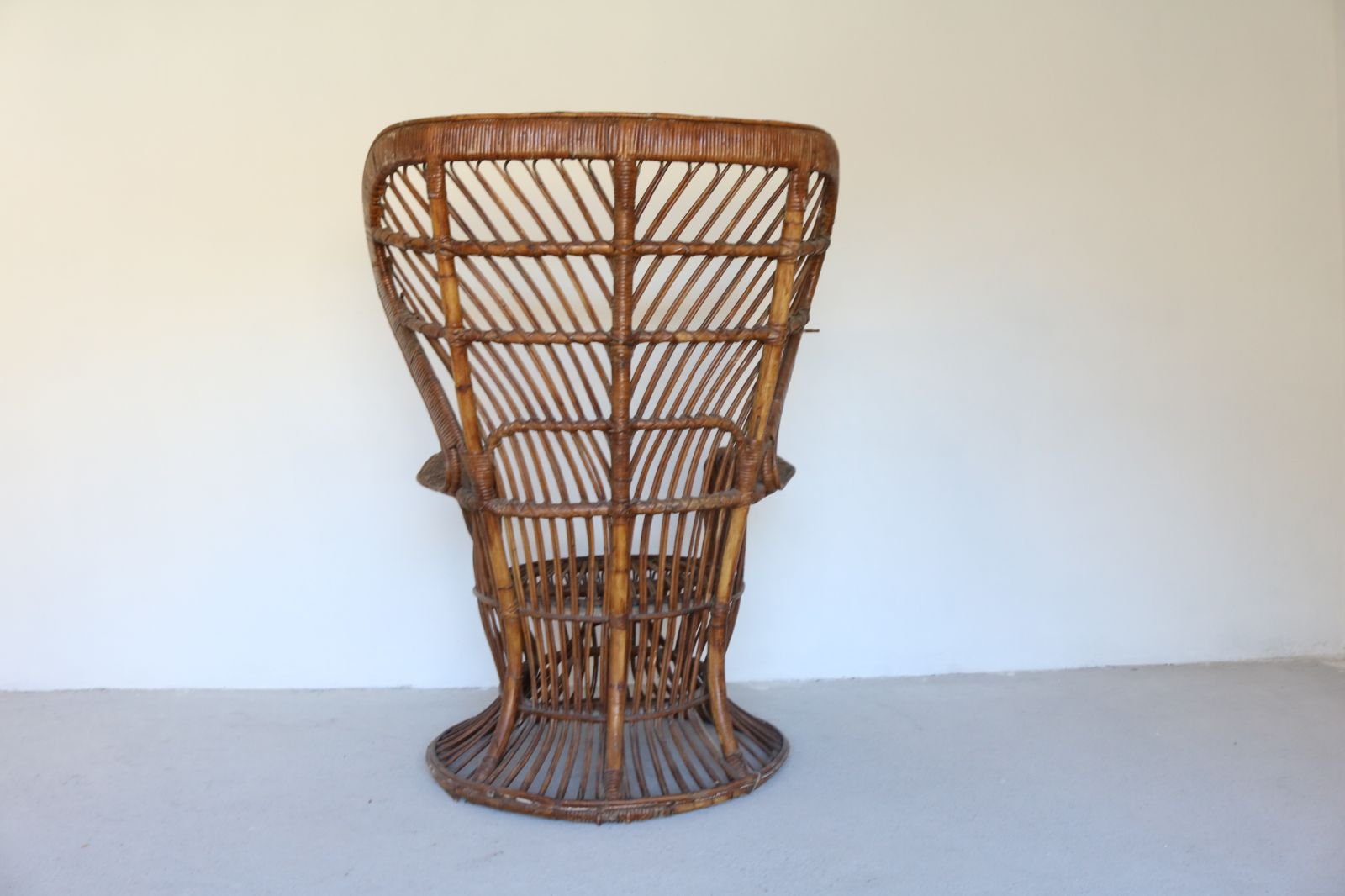 Rattan Armchairs with Floral Cushions, 1970s, Set of 2