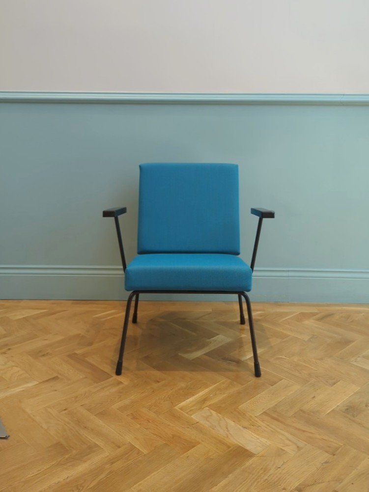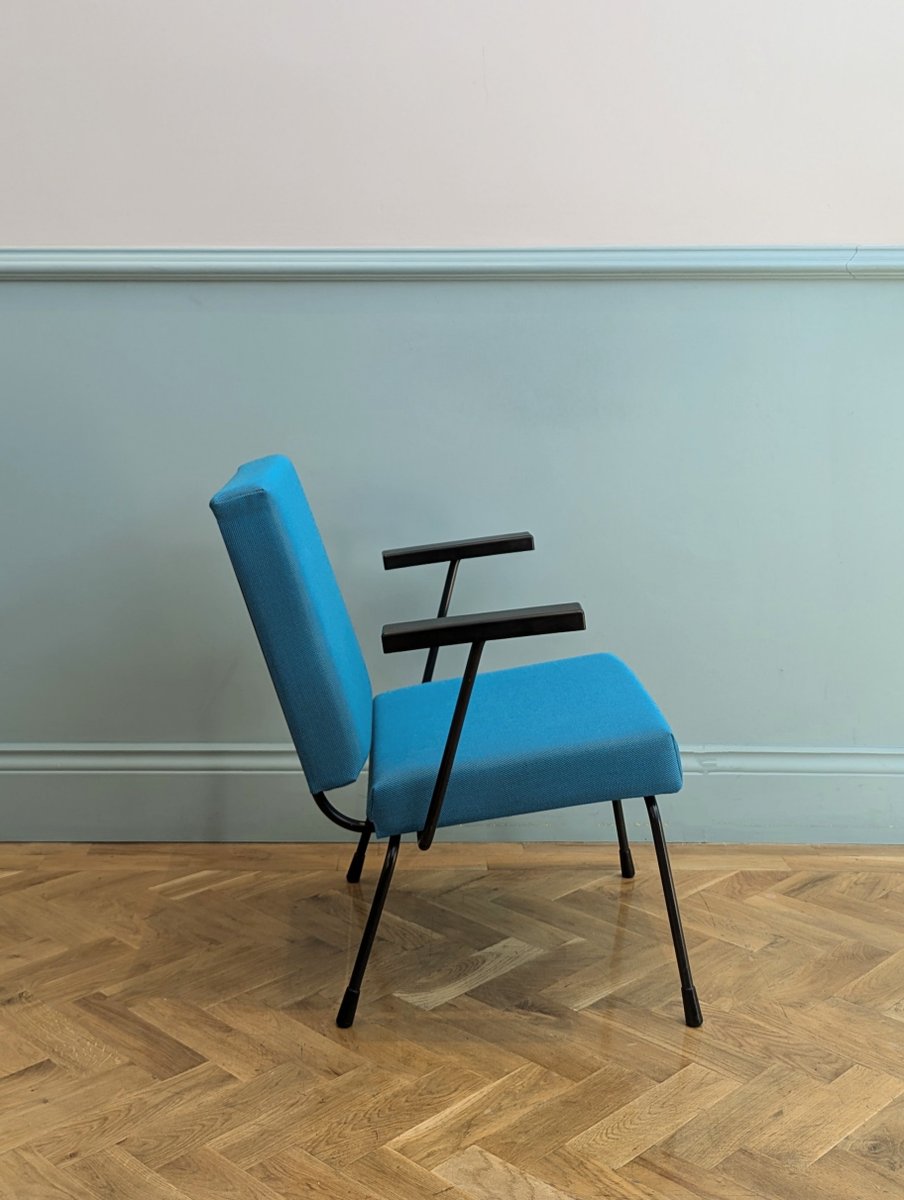 Gispen flourished in the 1950s and '60s, even after its founder's departure. In particular, the company found great success with the minimalist, rationalist designs of A. R. Cordemeyer and Wim Rietveld. Standout designs from the Gispen collection in the postwar era include the 1407 Armchair (1954) by Cordemeyer and Rietveld, Model 663 Storage System (1954) by Rietveld, Model Giso 4050 Lamp (1956) by Rietveld, 217 Chair (1957) by Rietveld and his father Gerrit Rietveld, 1262 Chair (1959) by Cordemeyer, and 1637 Swivel Chair (1963) by Cordemeyer.