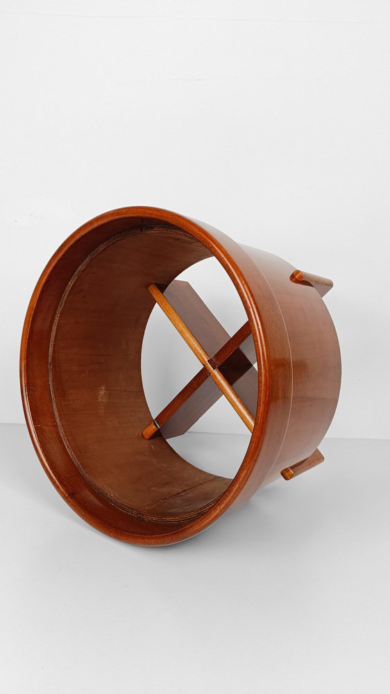 Mid-Century Modern Footstool in Teak Veneered Plywood with Ecru Bouclè Cushion, 1970s