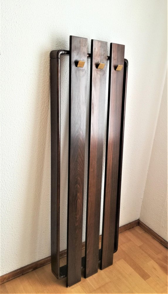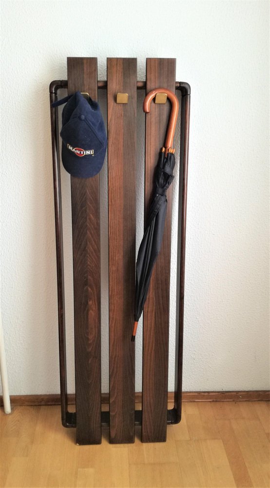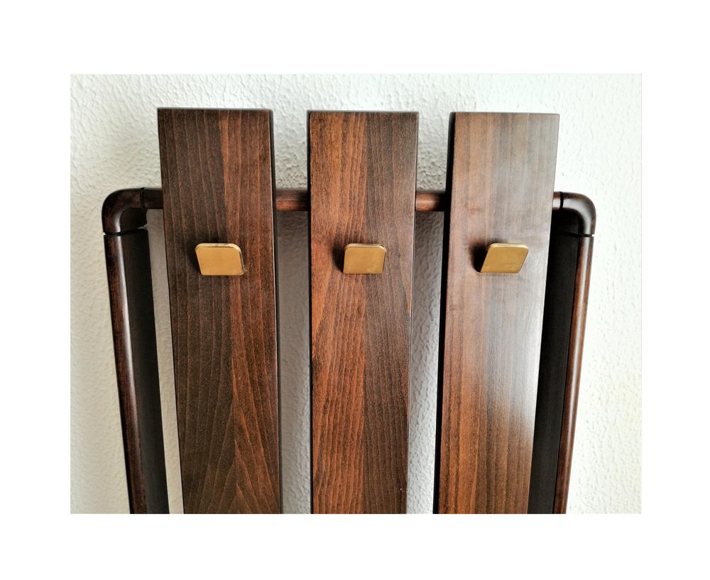 Mid-Century Modern Framed Wooden Panel Wall Coat Hanger