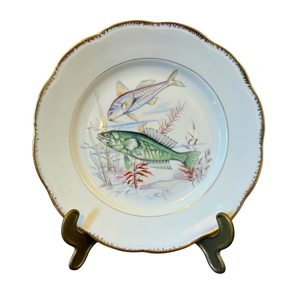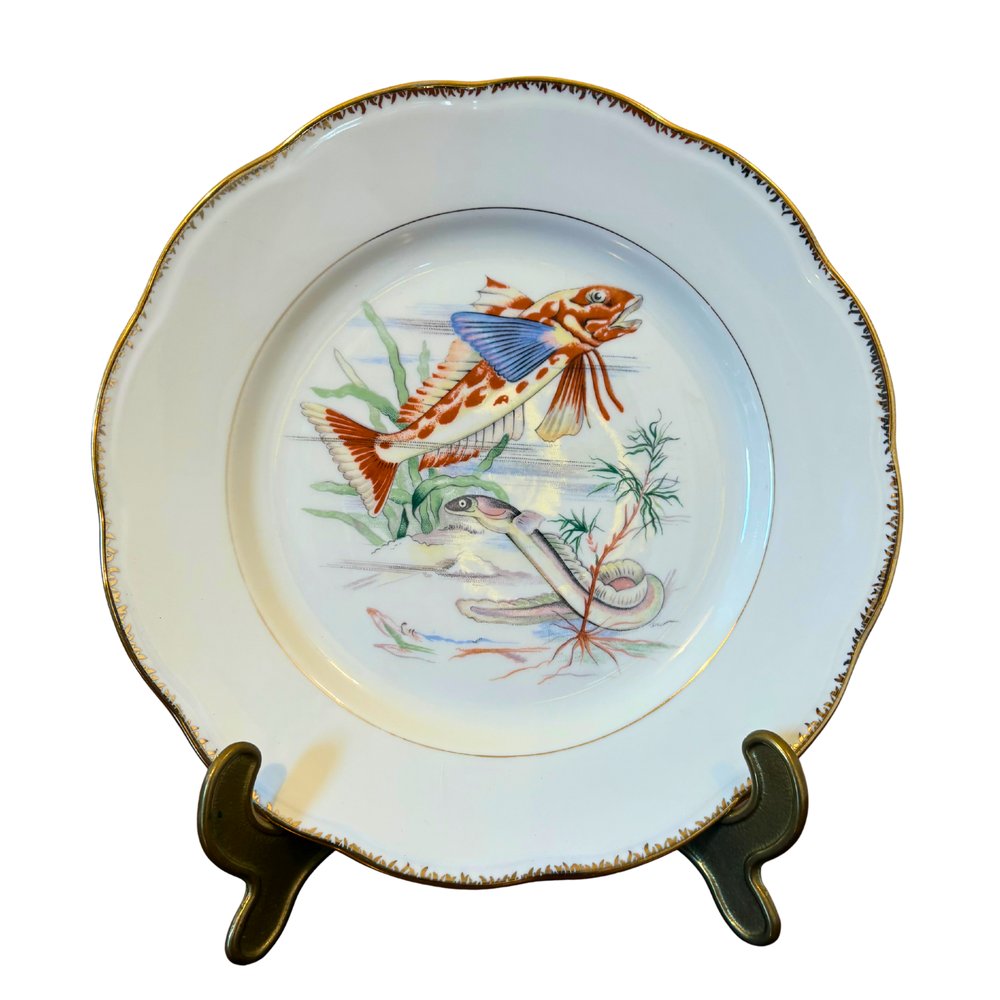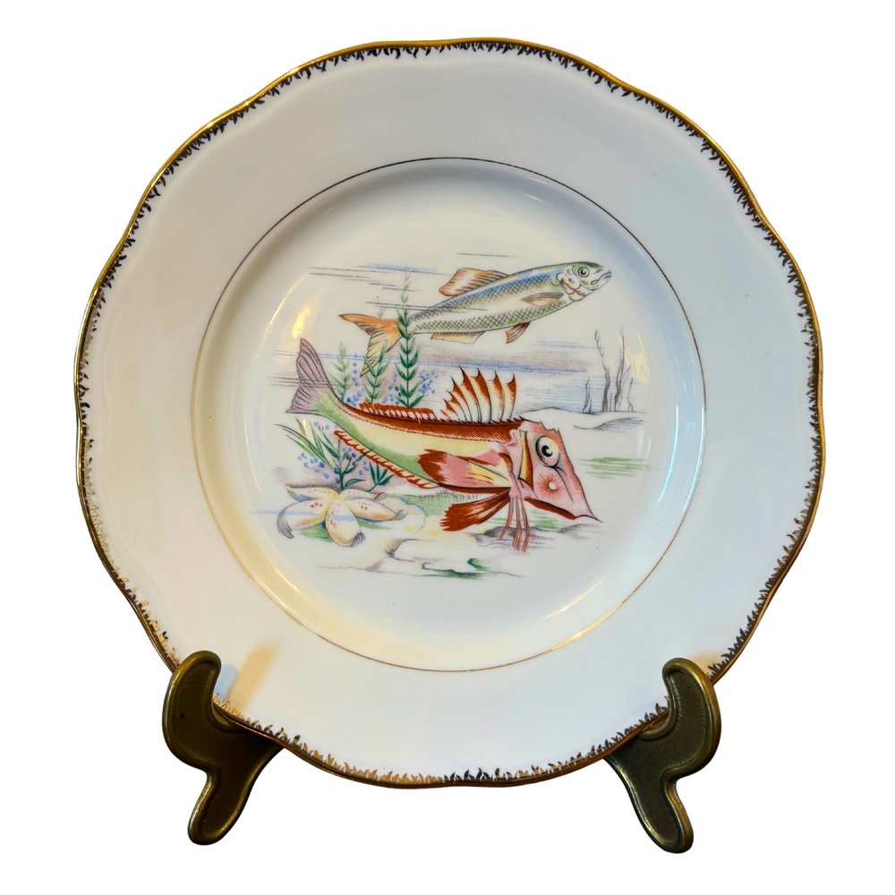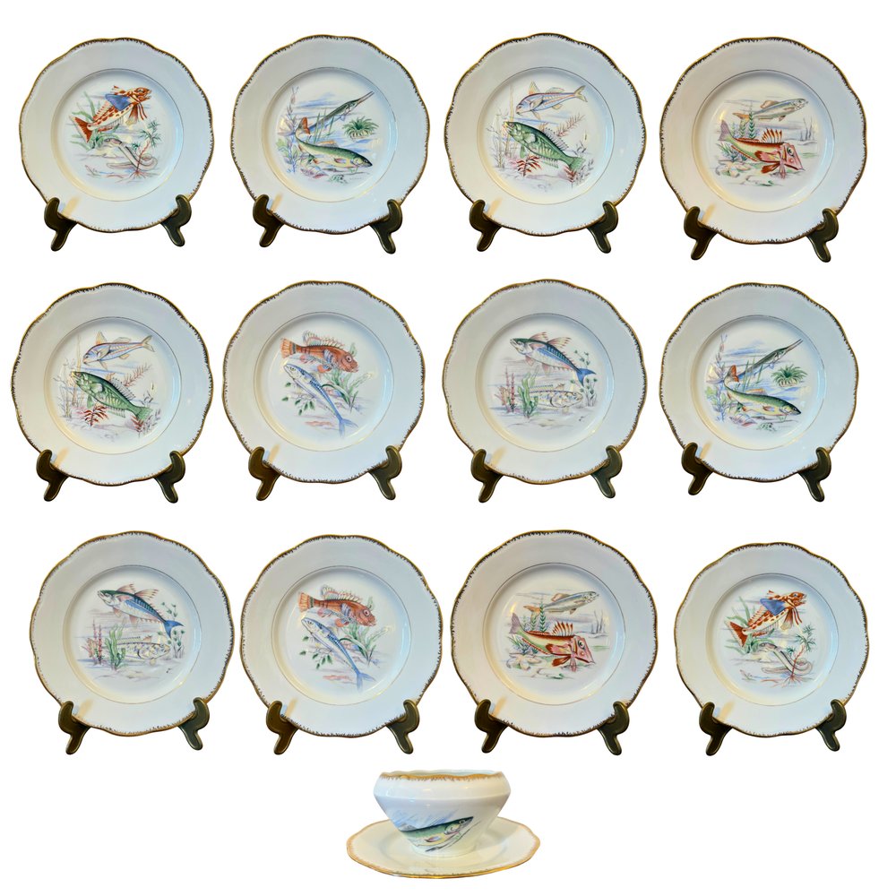Mid-Century Modern Hand-Painted Fish Service by S.F.P. for Limoges, 1950, Set of 13