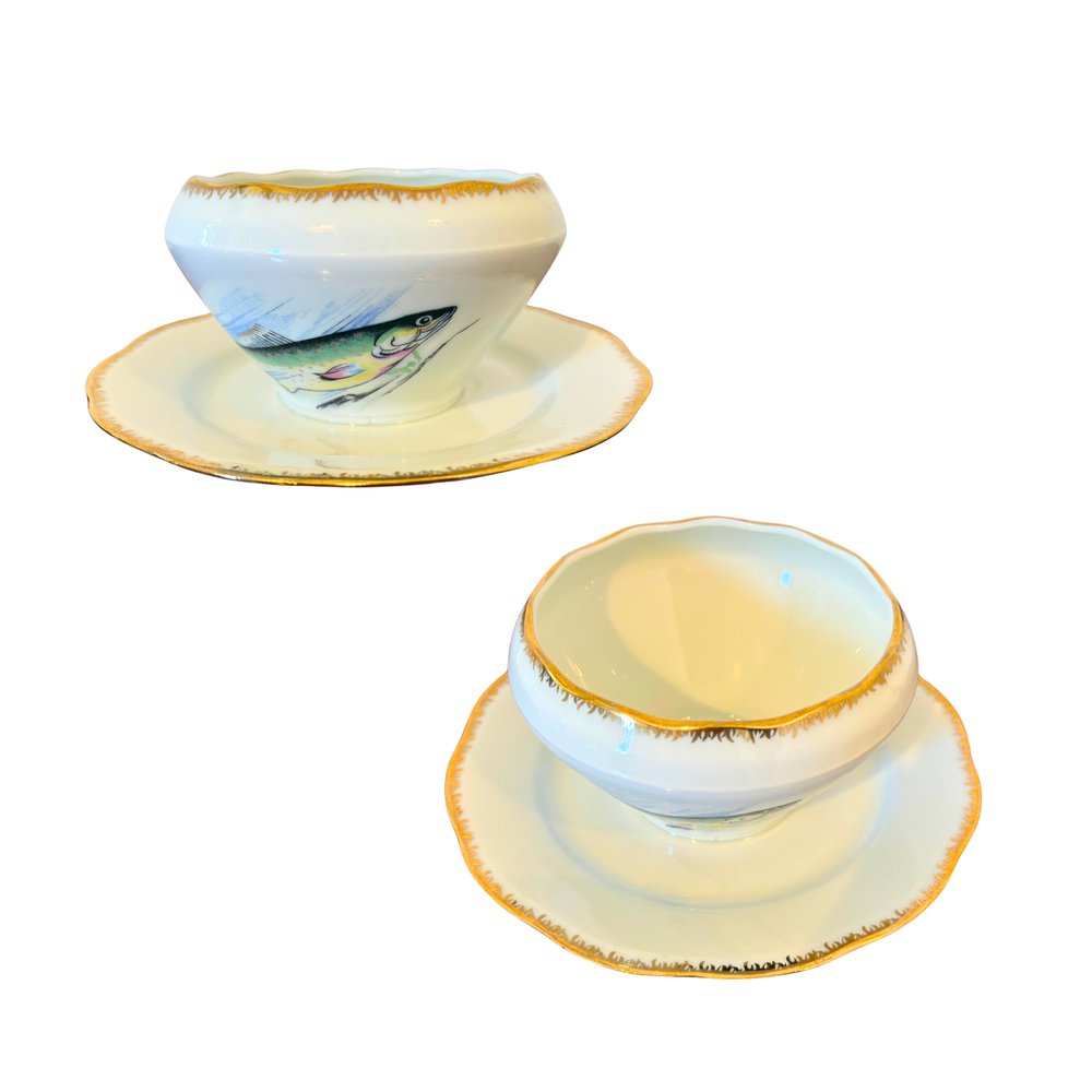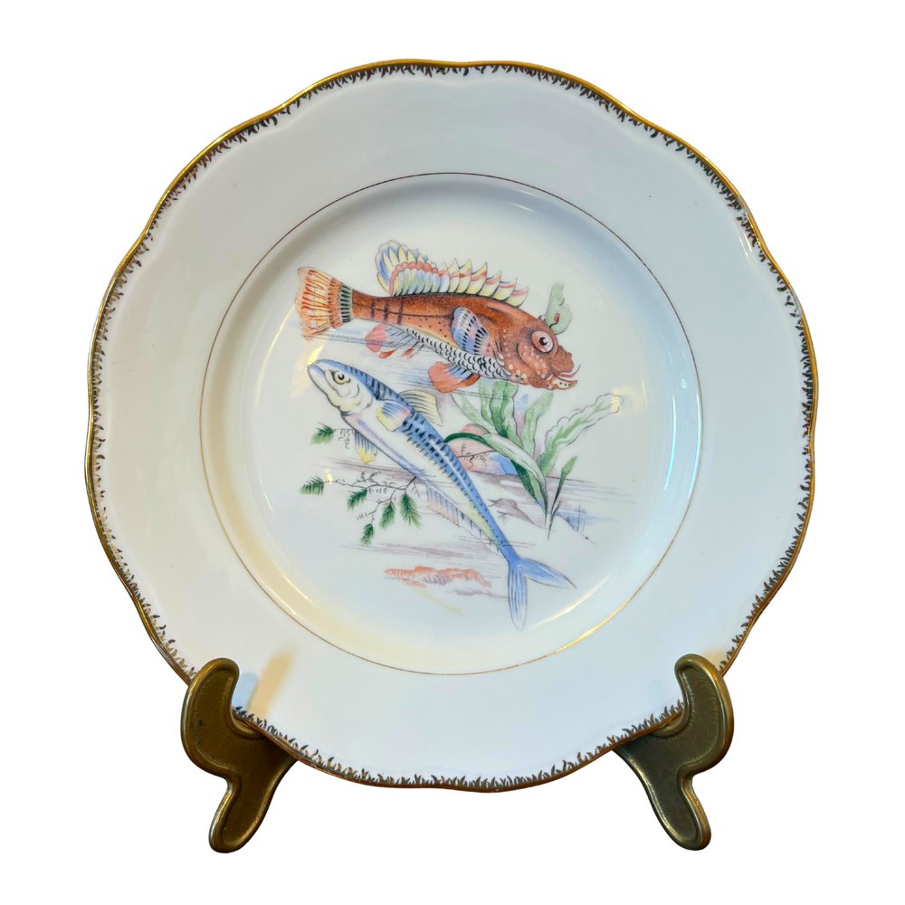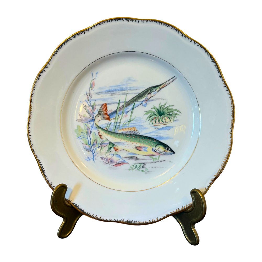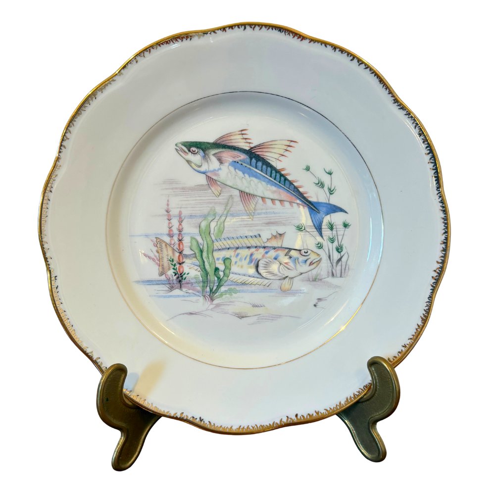Mid-Century Modern Hand-Painted Fish Service by S.F.P. for Limoges, 1950, Set of 13