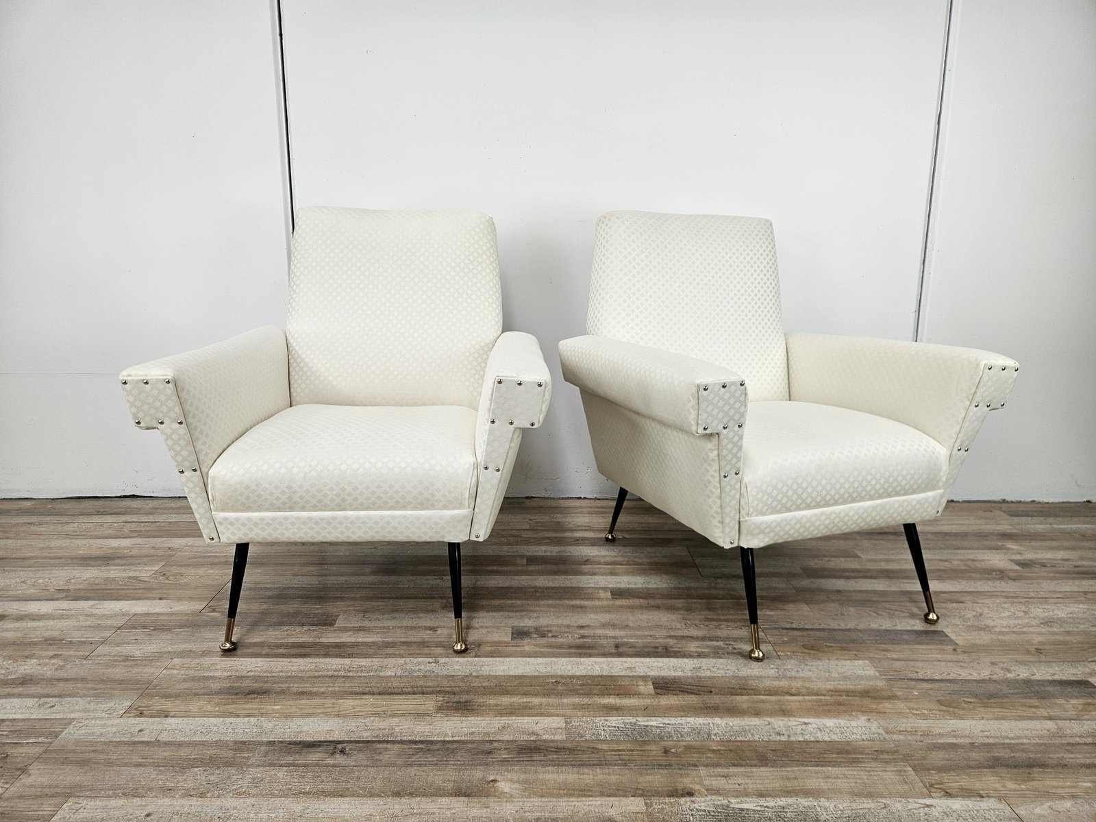 Mid-Century Modern Italian Chairs in Cream Fabric with Iron Legs, 1950, Set of 2