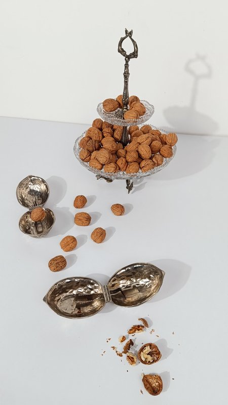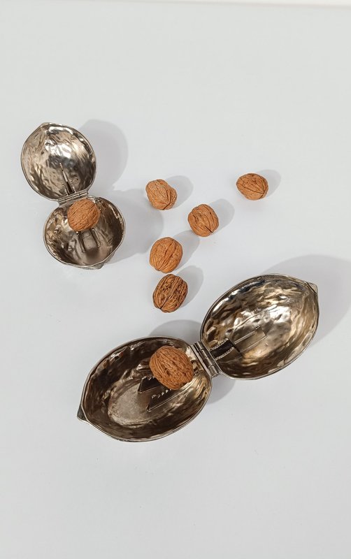 Mid-Century Modern Italian Chrome Nutcracker in Walnut, 1970s