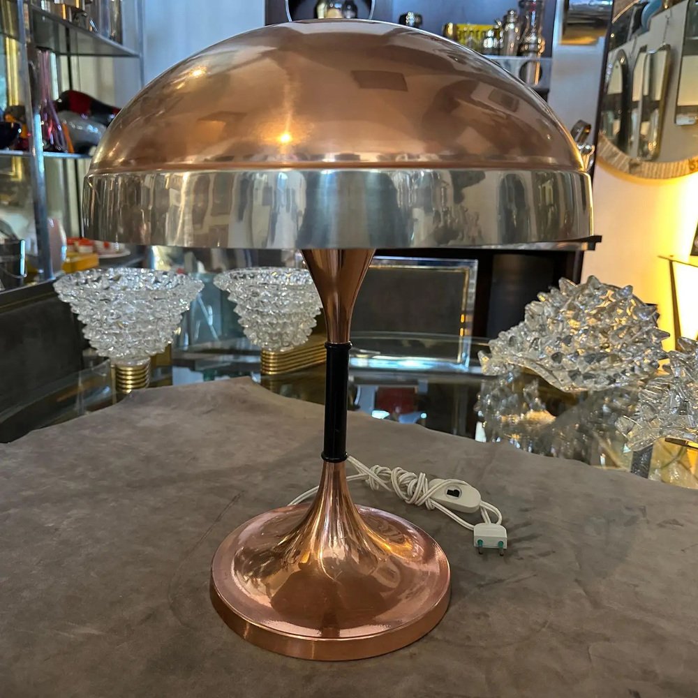 Mid-Century Modern Italian Copper and Steel Table Lamp, 1970s