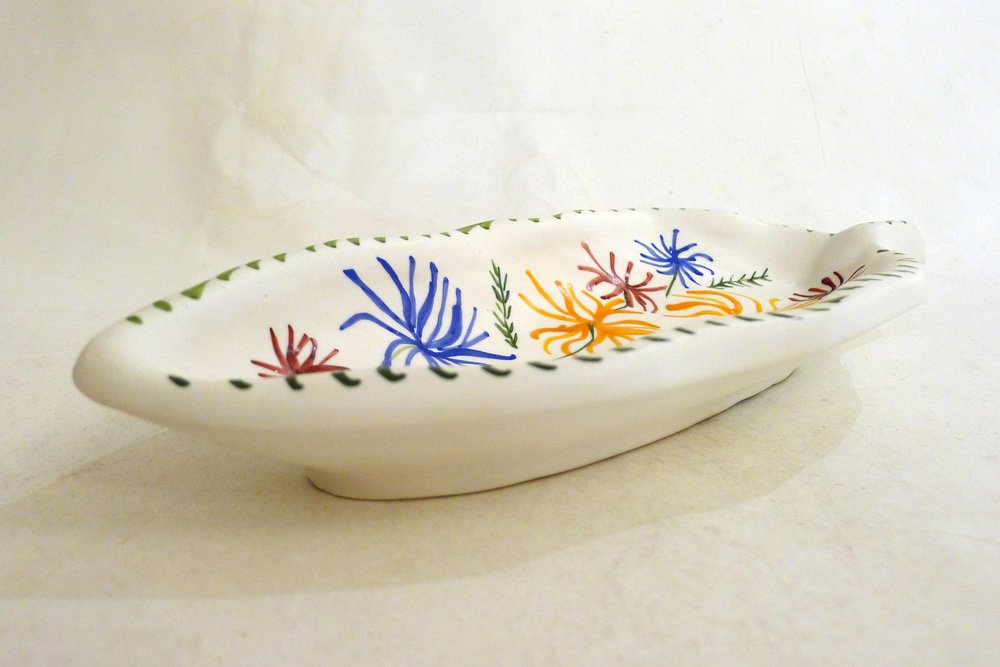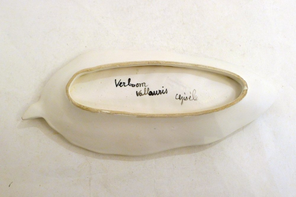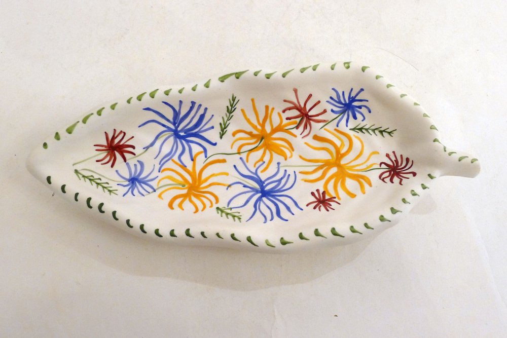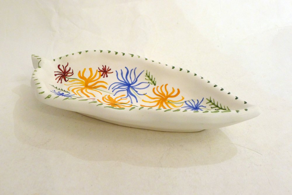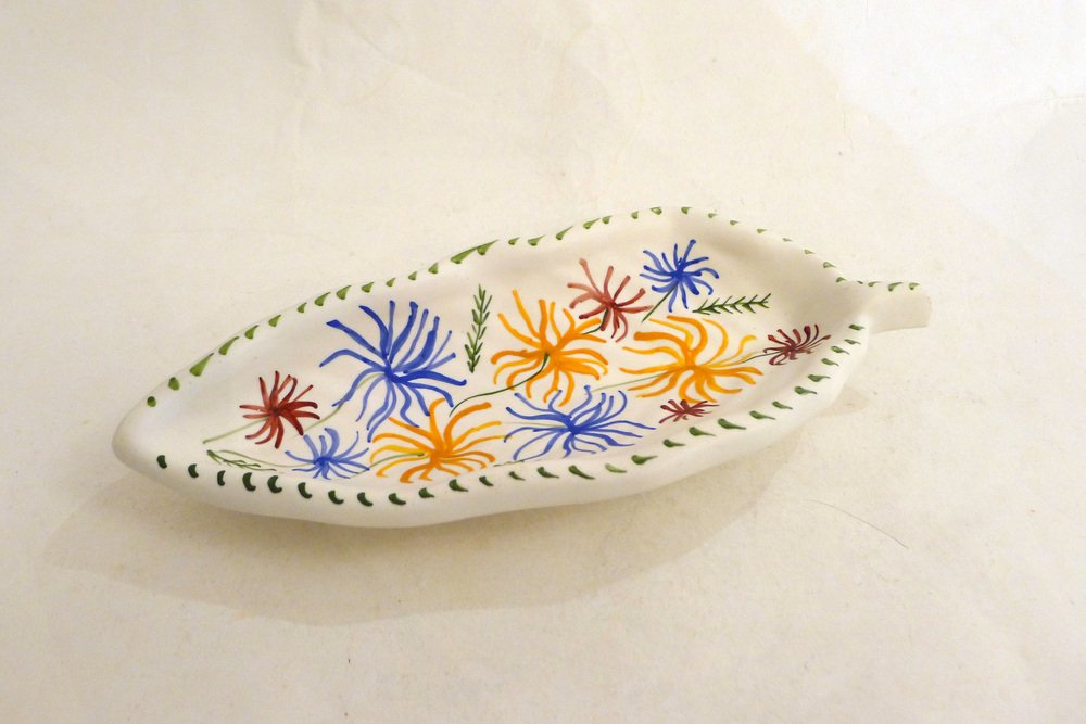 Mid-Century Modern Leaf-Shaped Trinket Dish in Matte Vallauris Earthenware by G. Verboom, 1950s