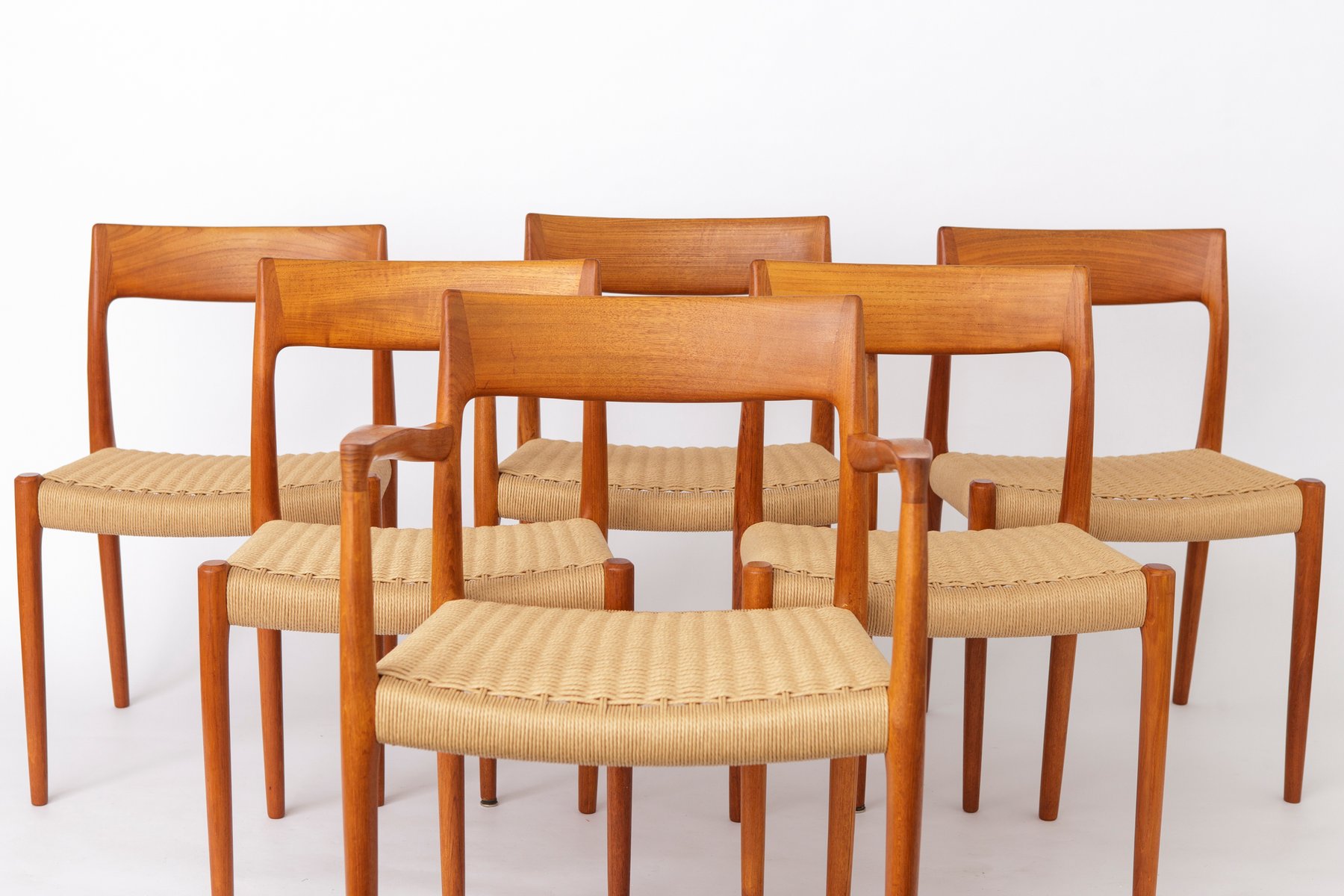 Danish Mid-Century Modern Model 84 Chairs Dining Chairs in Teak and Leather by Niels Otto Møller, 1974, Set of 5