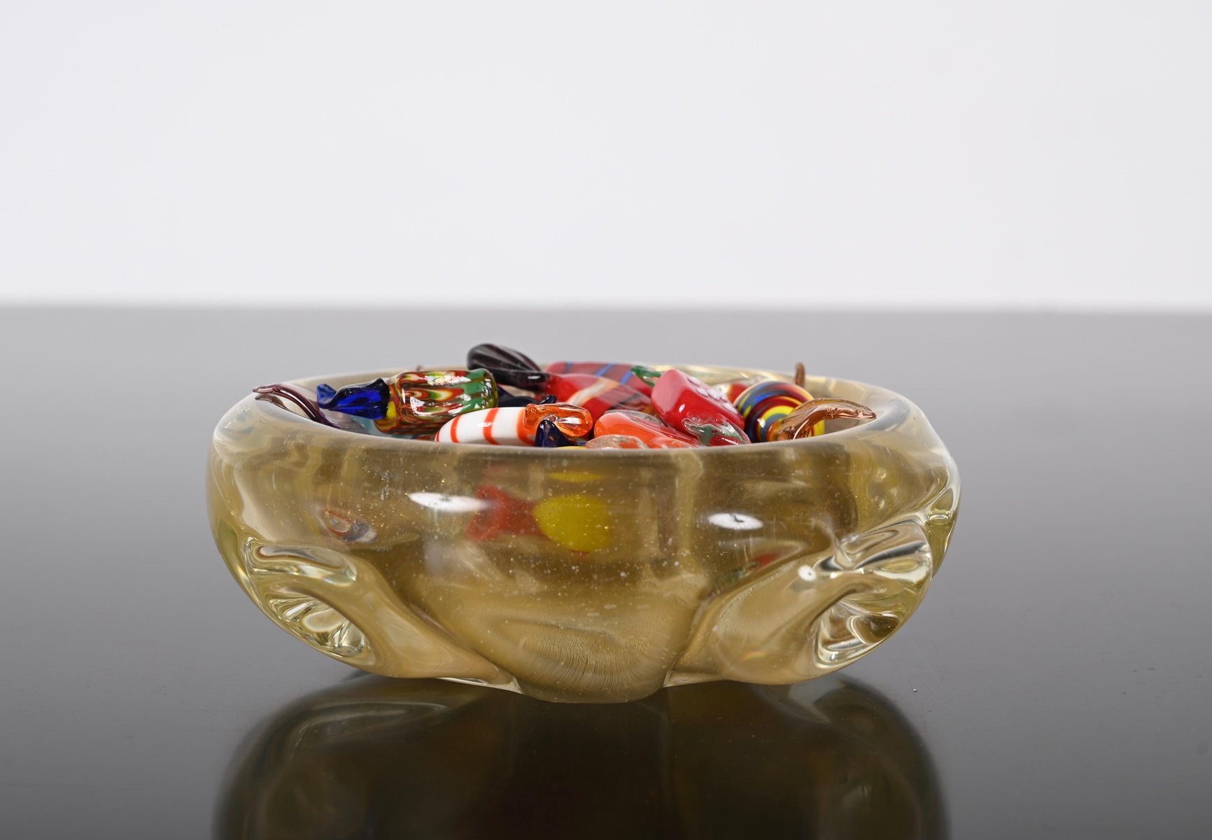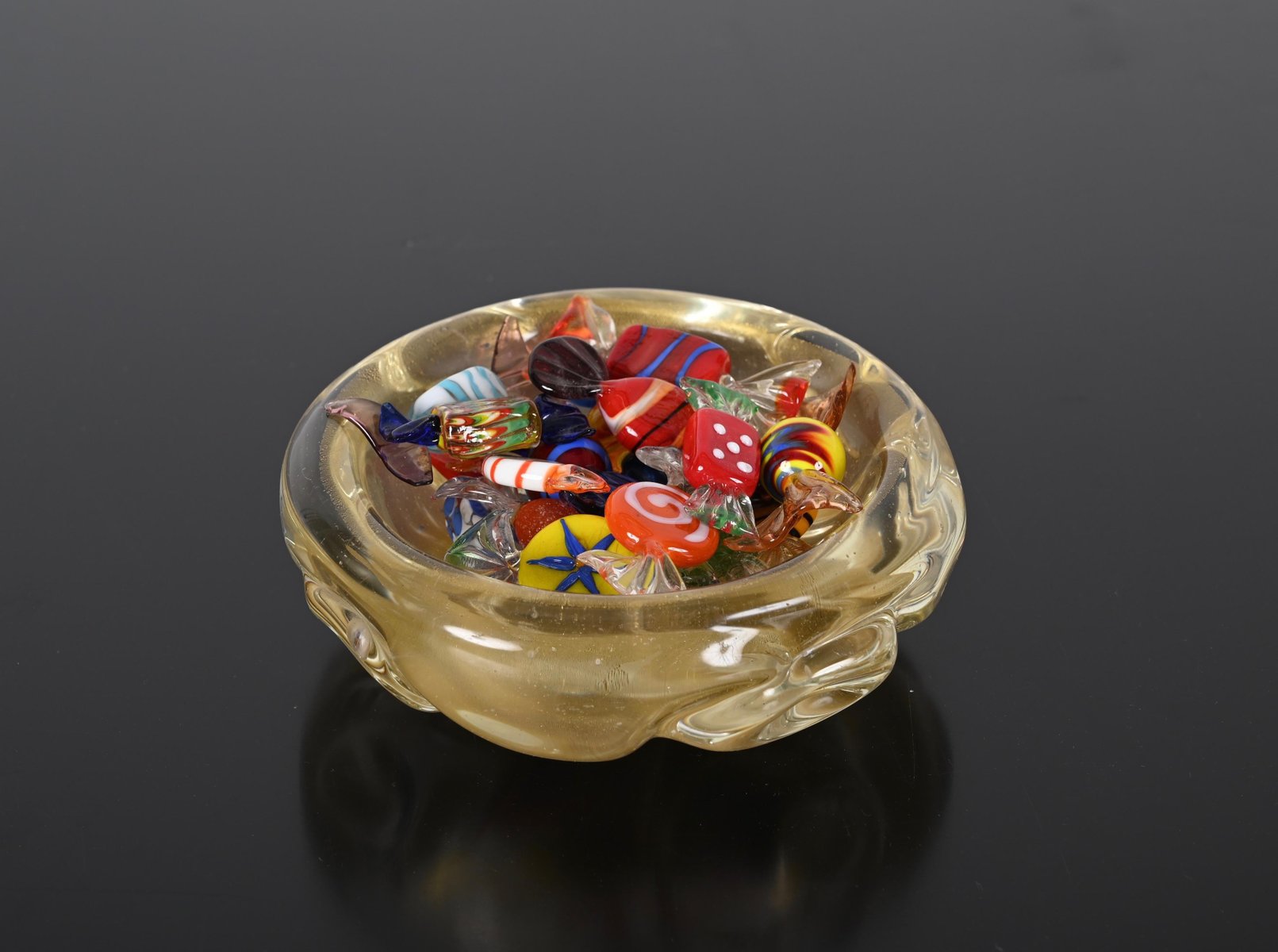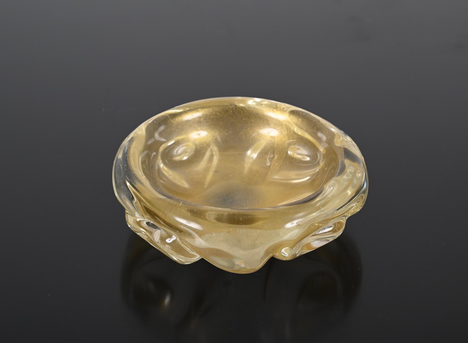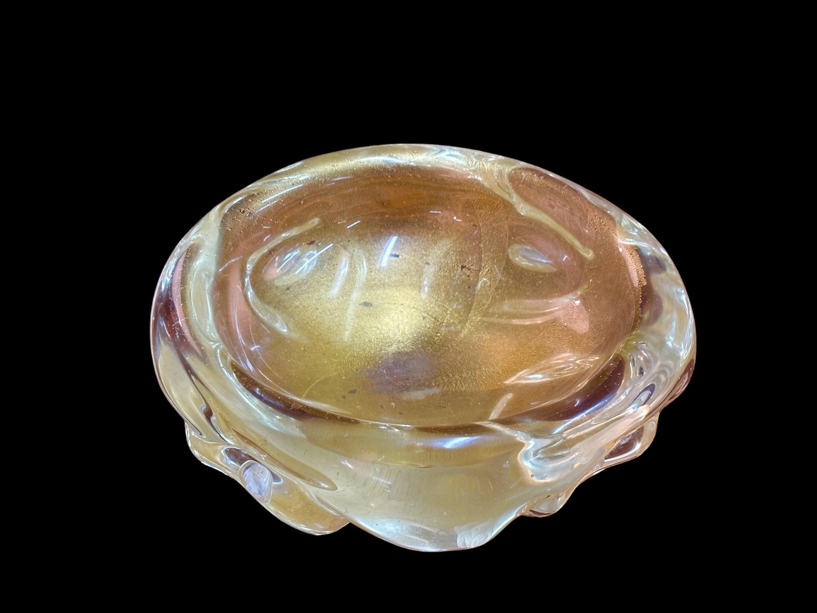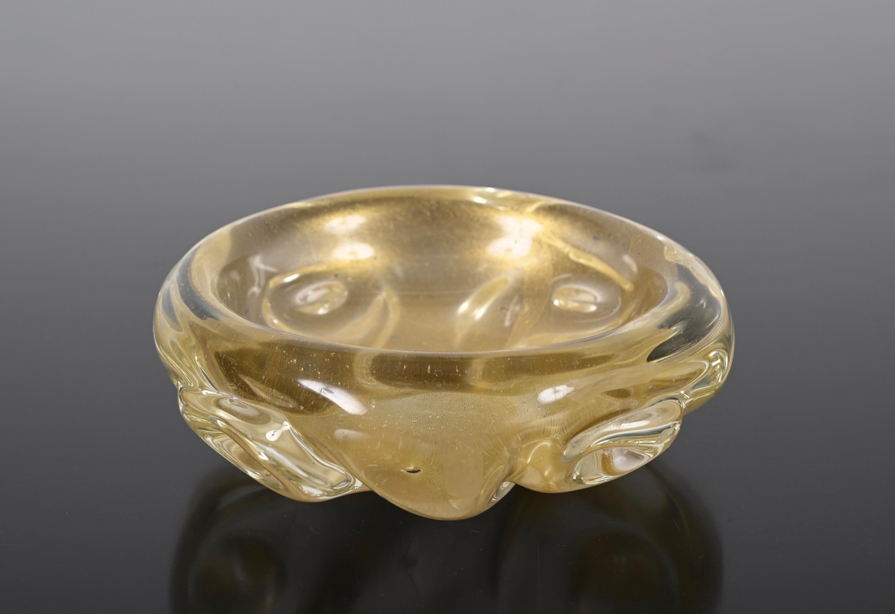 Mid-Century Murano Glass Bowl with Gold Dots by Archimede Seguso, Italy, 1960s