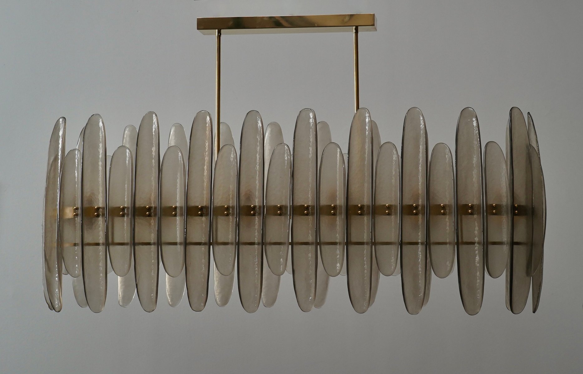 Mid-Century Murano Smoky Art Glass Rectangular Chandelier, 2000s