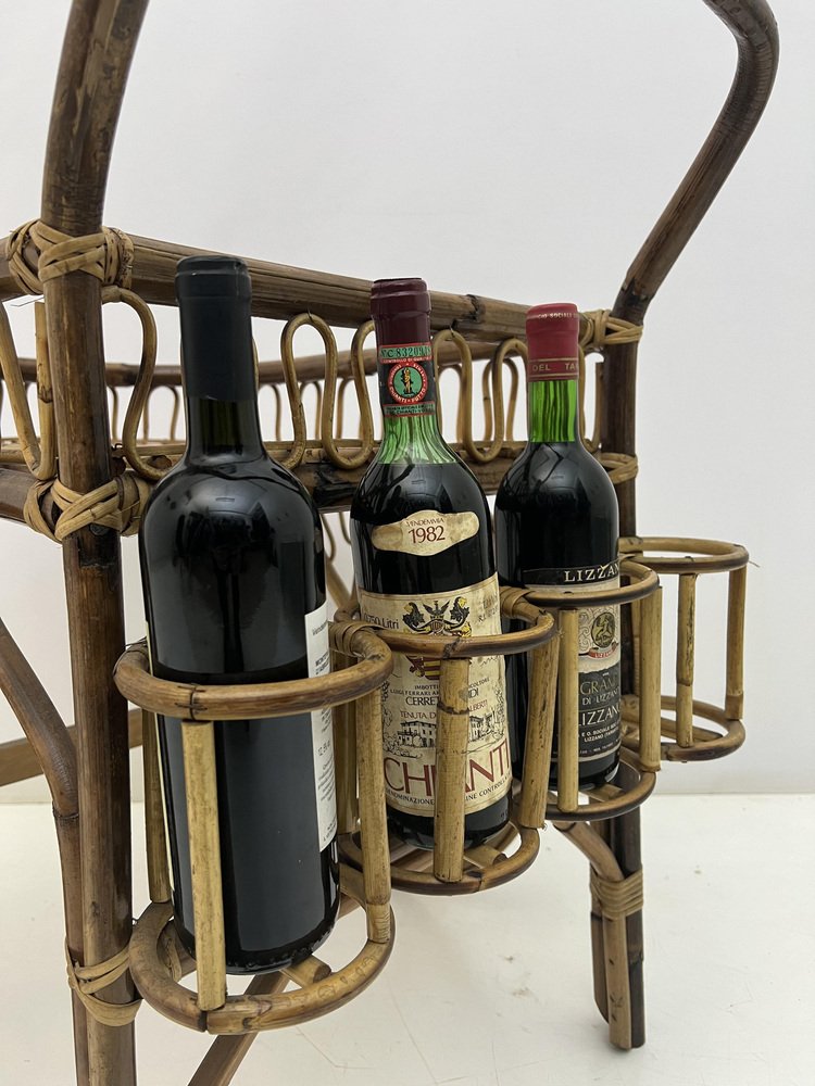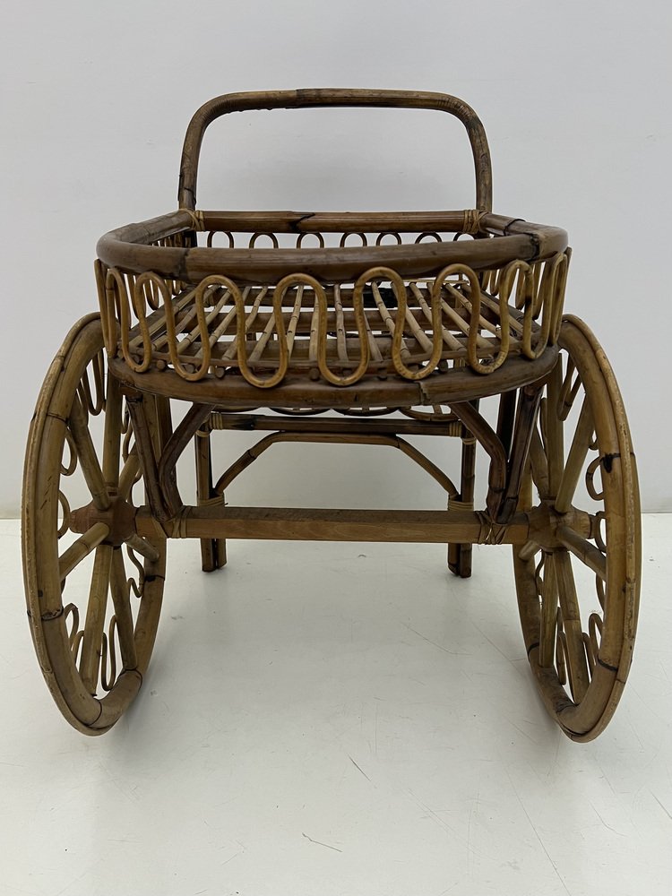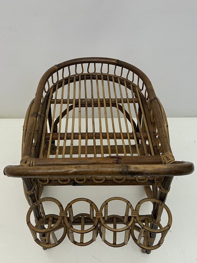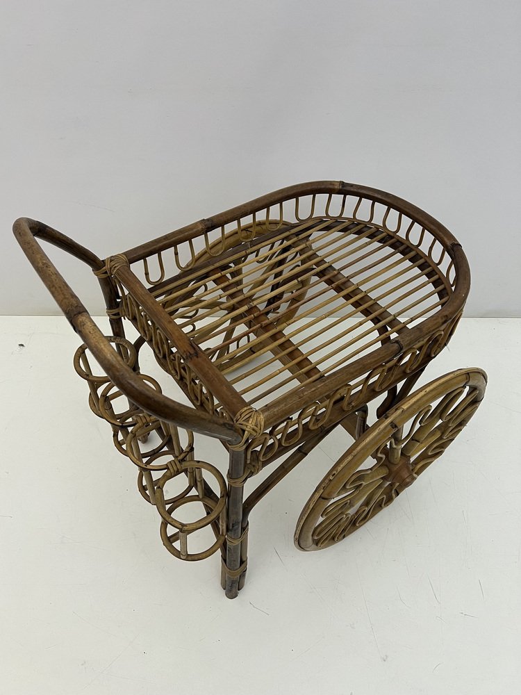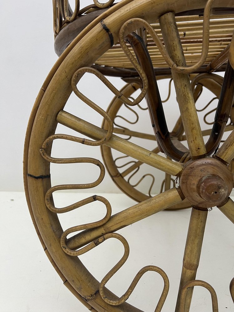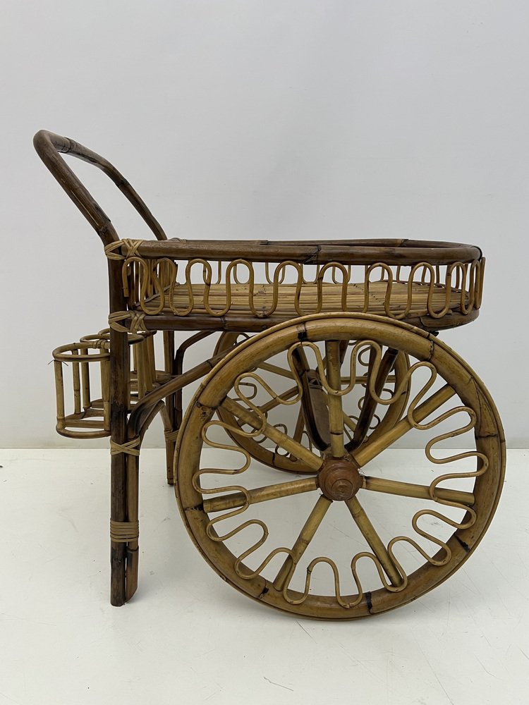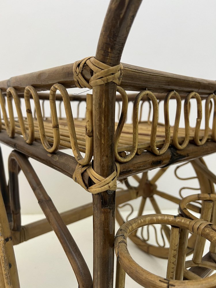 Mid-Century Riviera Bamboo and Wicker Bar Cart, 1950s