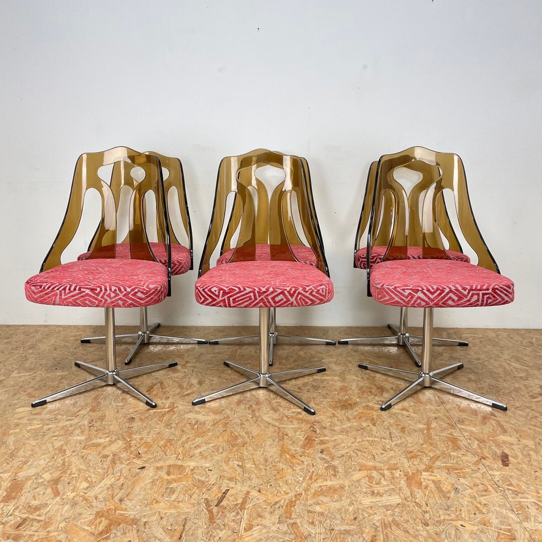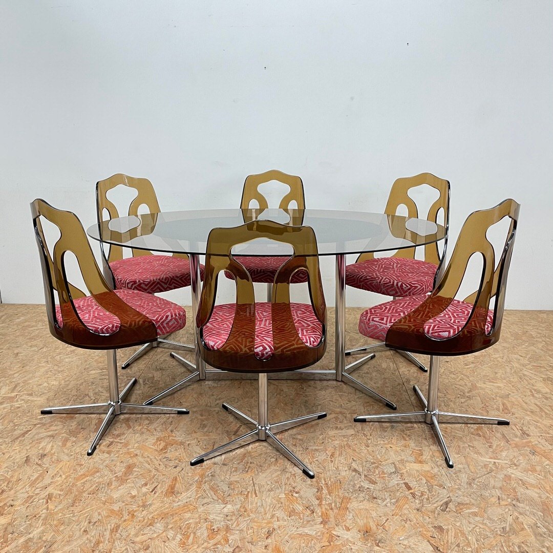 Mid-Century Smoked Acrylic Glass Chairs and Glass Table, 1960s, Set of 5