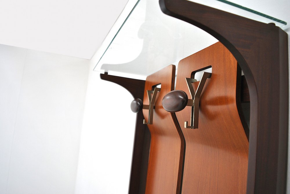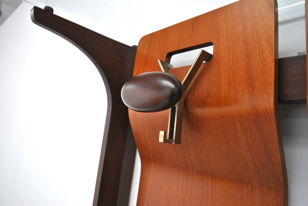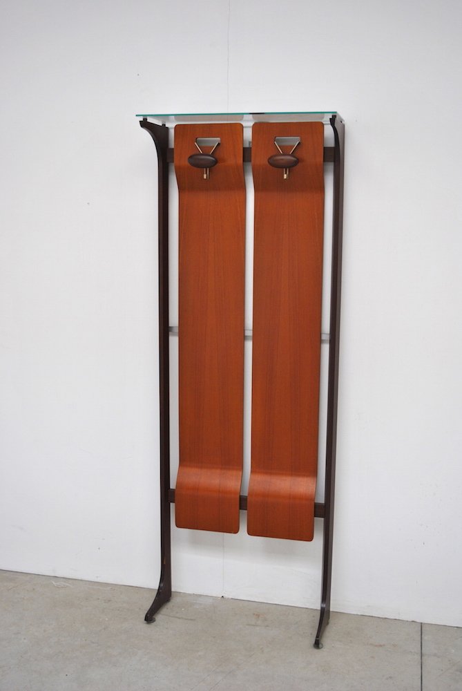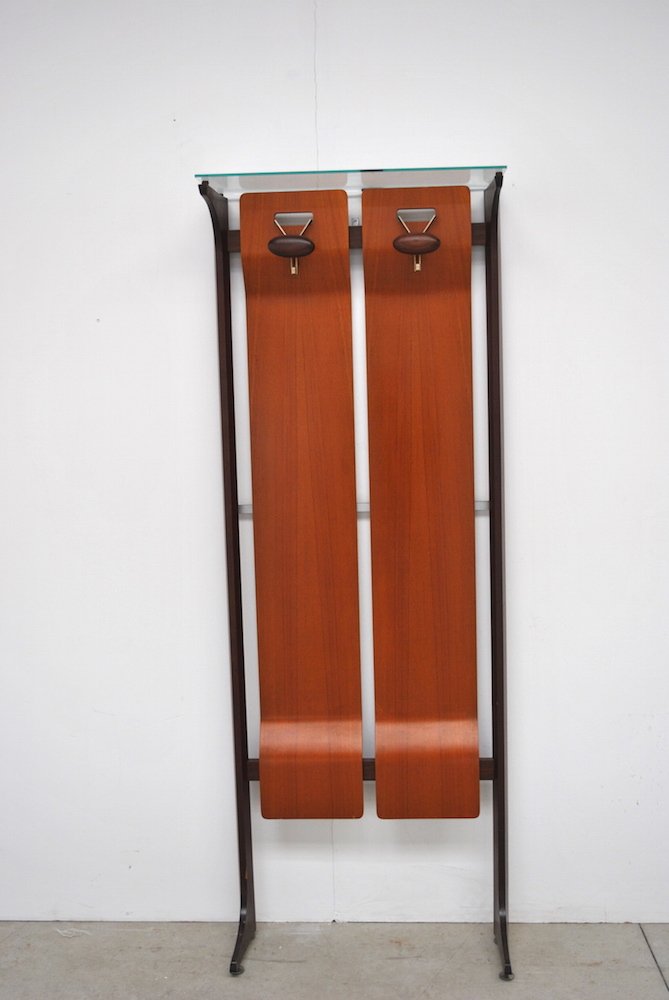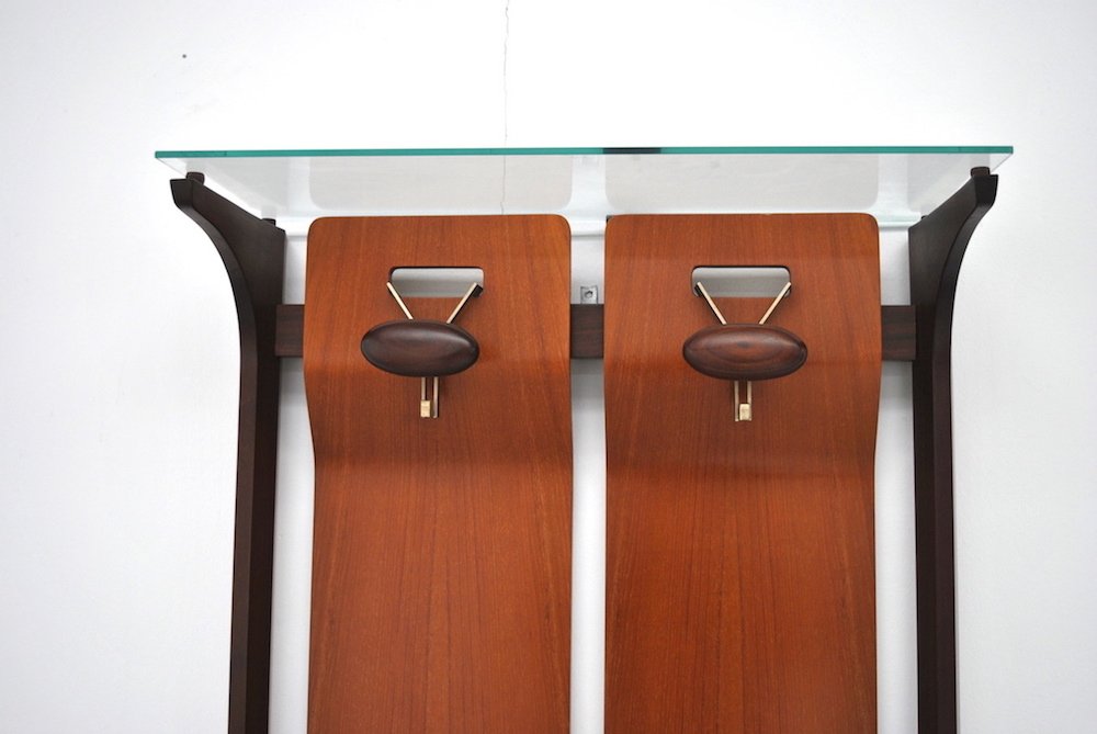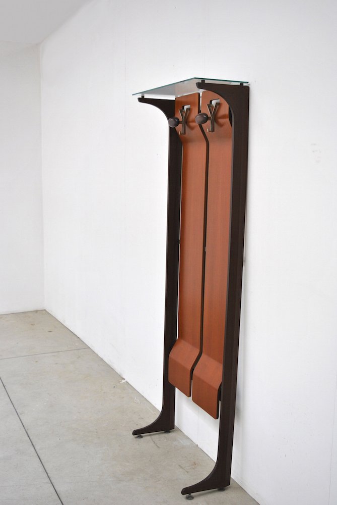 Mid-Century Wood & Glass Coat Stand with 2 Hooks by Gianfranco Frattini