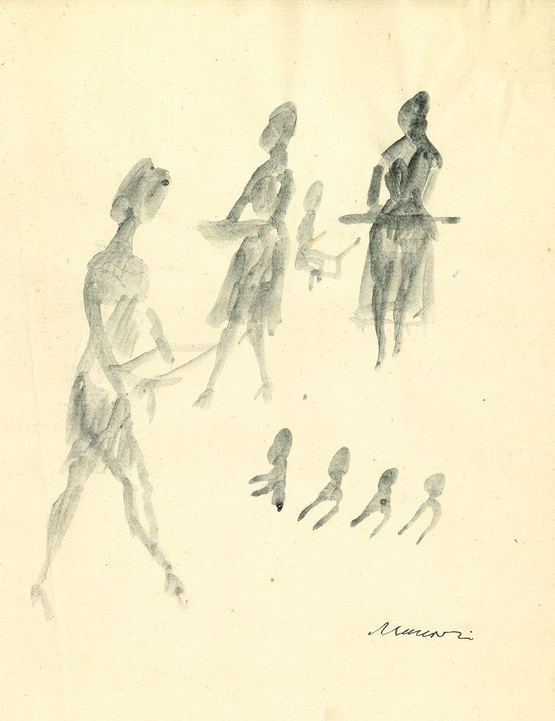 Mino Maccari, Female Silhouette, Original Watercolor Drawing, 1960s