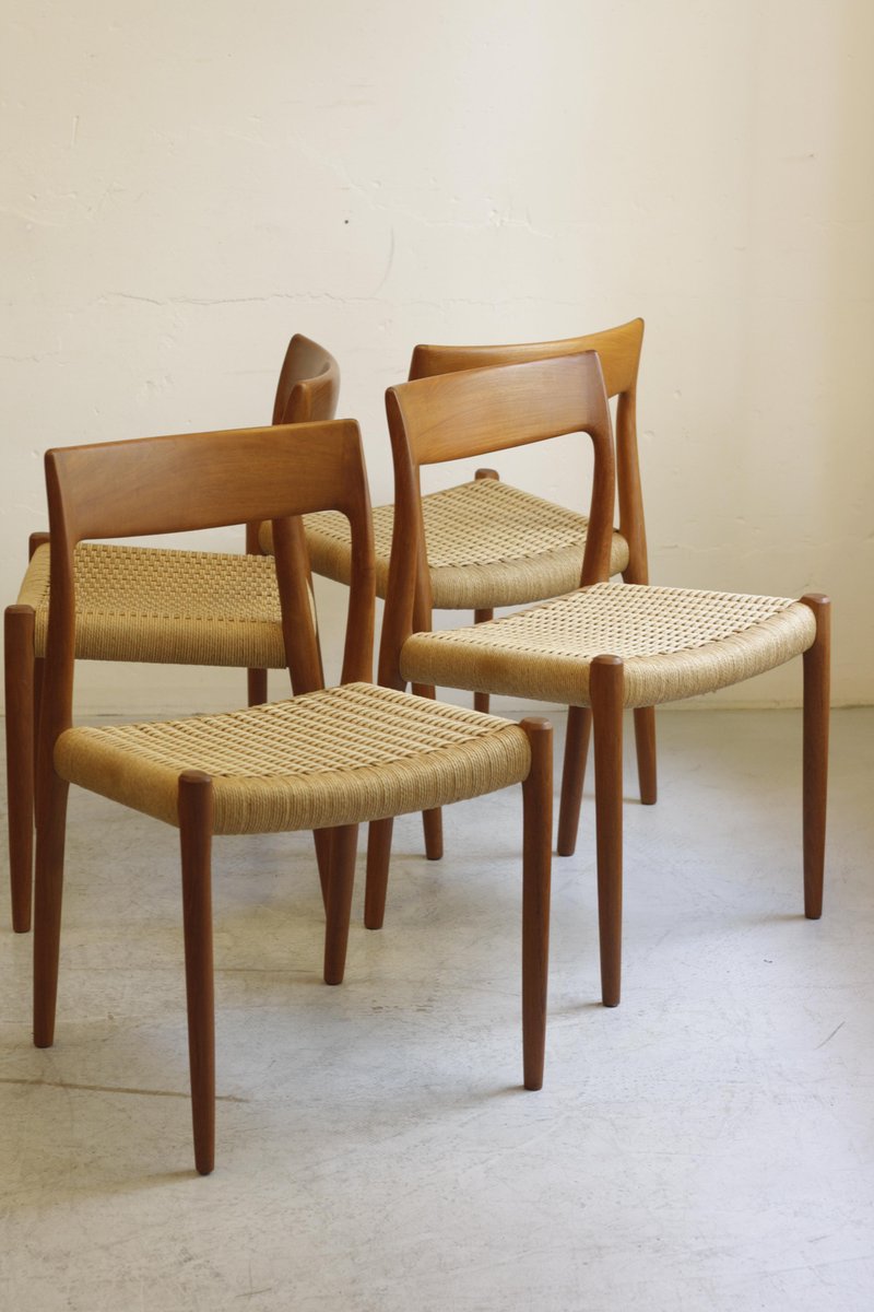 Model 77 Dining Chairs in Teak by Niels Otto Møller for JL Møllers, Set of 4